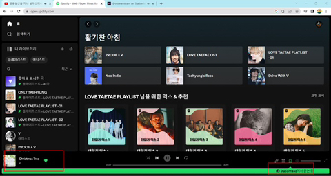 스포티파이에서는 하단에 초록바