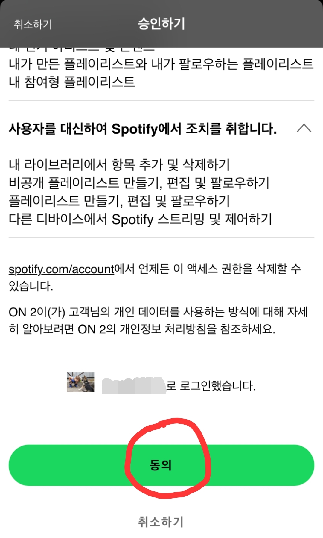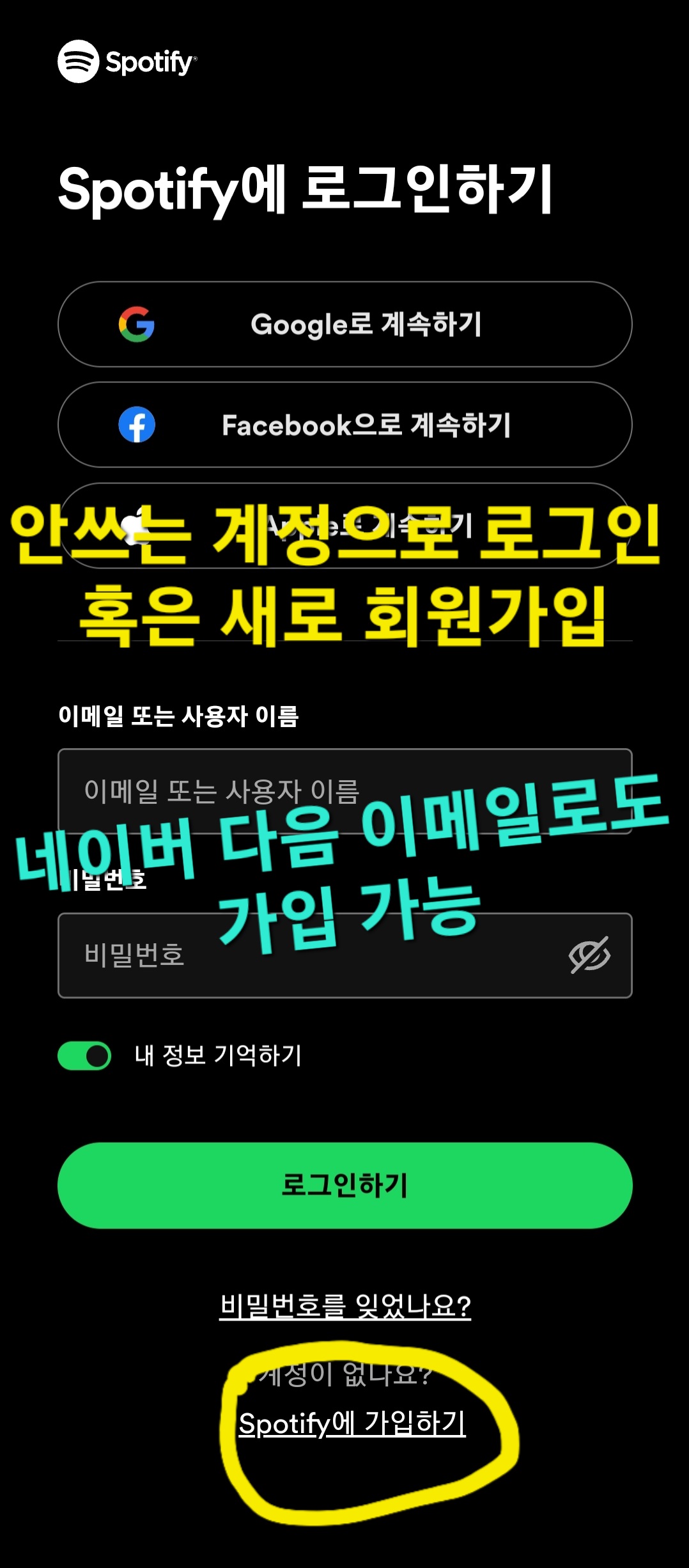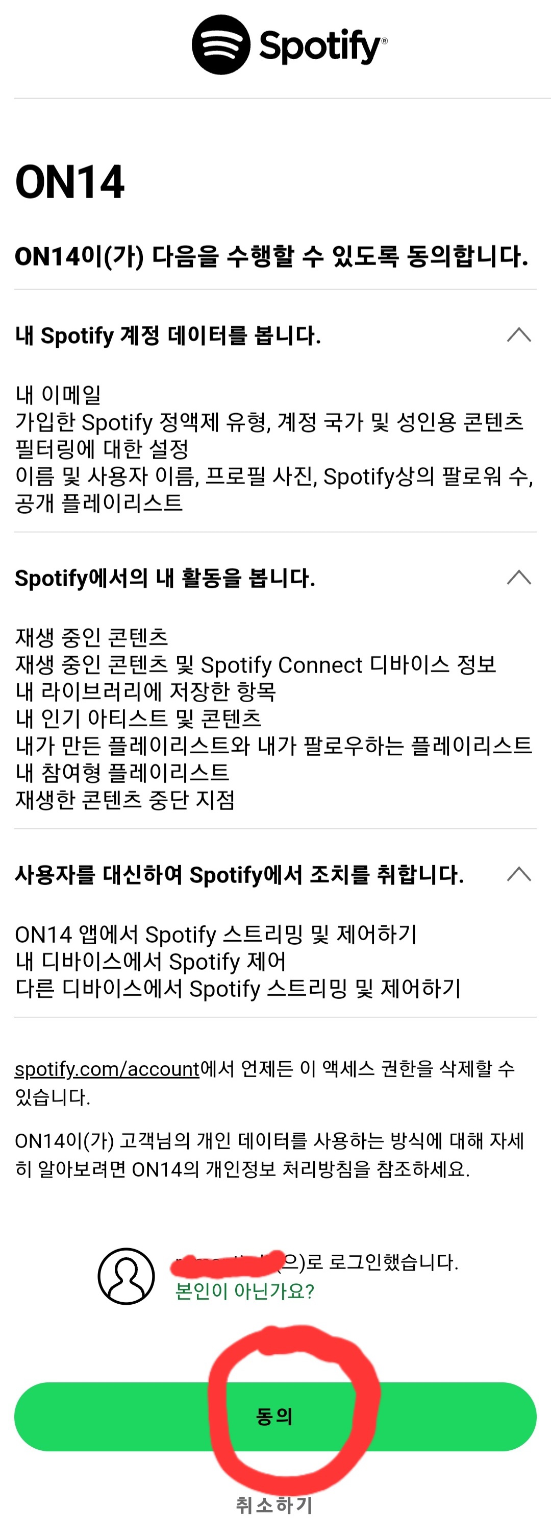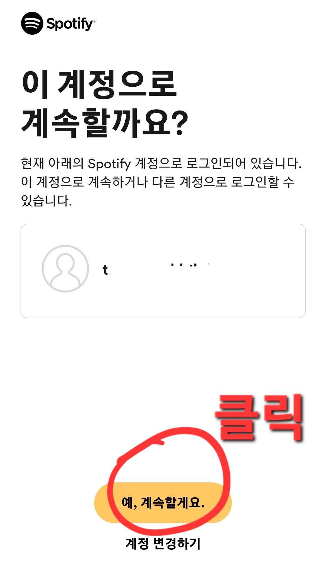 ※로그인 풀려있다면 스포티파이 아이디로 로그인