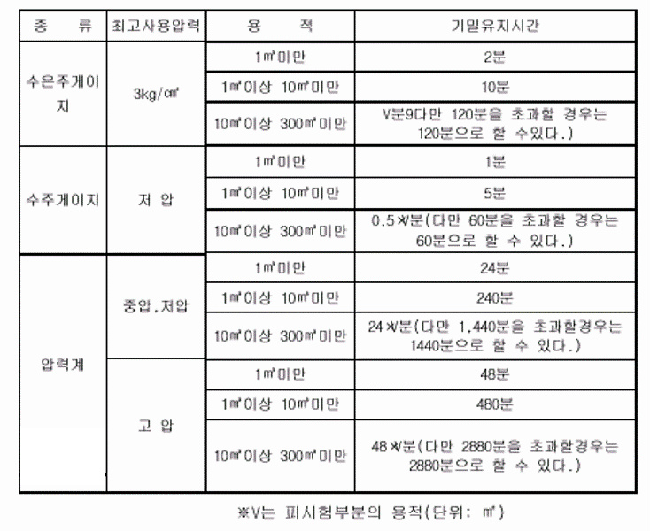 (2.7) 기밀시험은 원칙적으로 공기 혹은 불활성가스를 압입시켜 행한다.