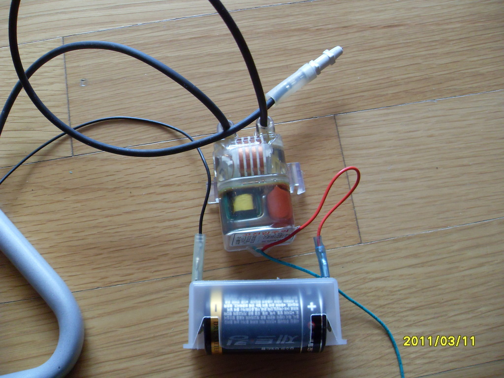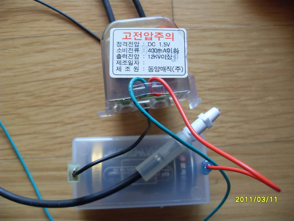 전압은 고압이지만 소비전류가 400mA 약하기 때문에 일반적으로 안전하다