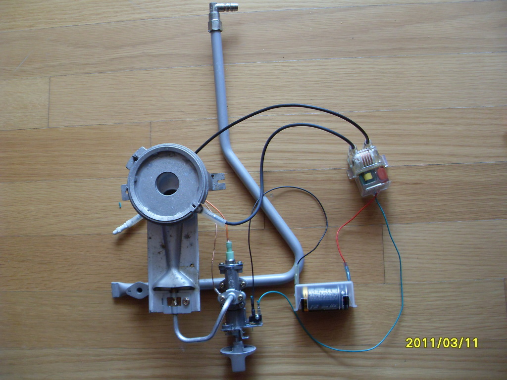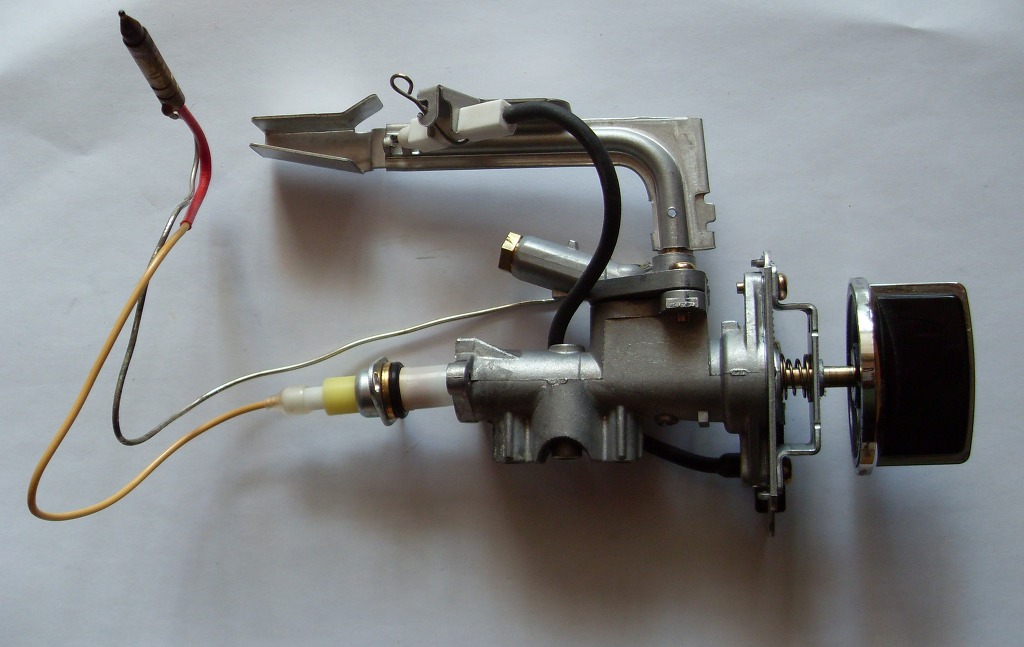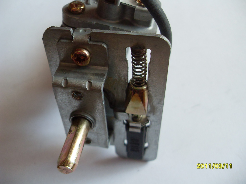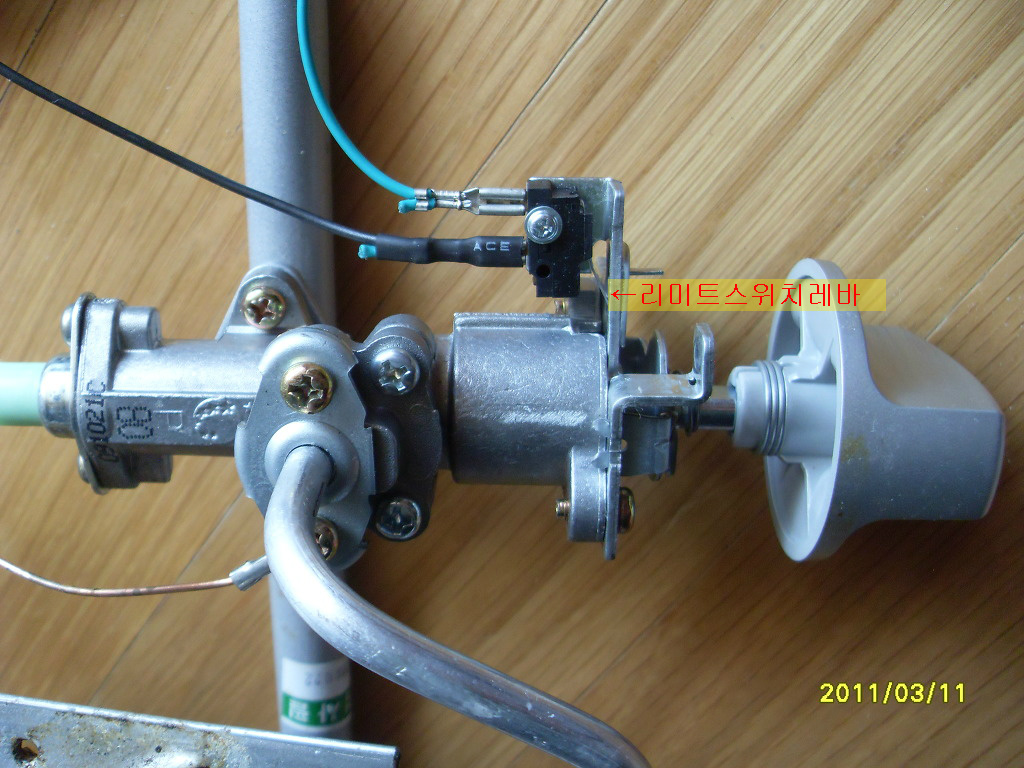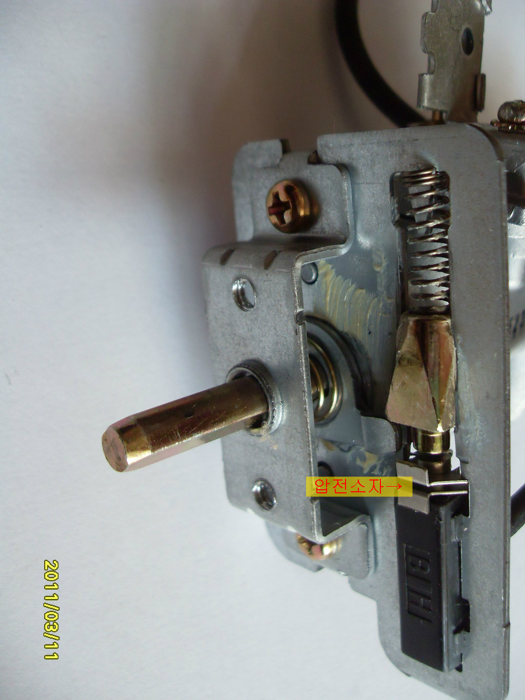 점화손잡이를 누르고 돌리면 리미트스위치의 접점이 연결되고 불꽃이 튀어 점화가된다