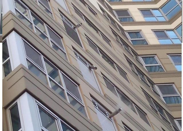 2) 건물외부 차량이나 물건 충돌로인하여 연도가찌그러 지거나 이탈