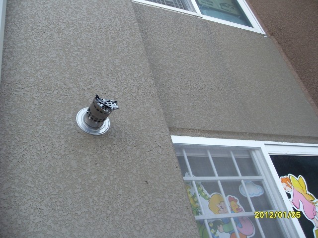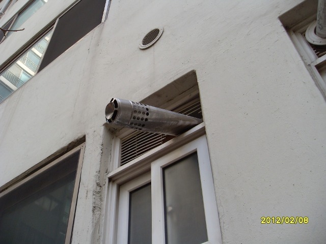 배기통의 풍압대내에 설치에 의한 배기가스 역류