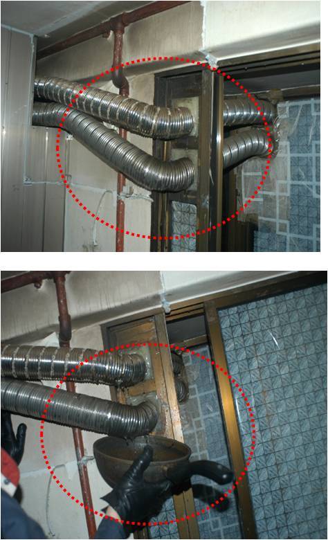 • 연통이 찌그러지거나 꺽어진 곳은 없는가(건물내부/외부)