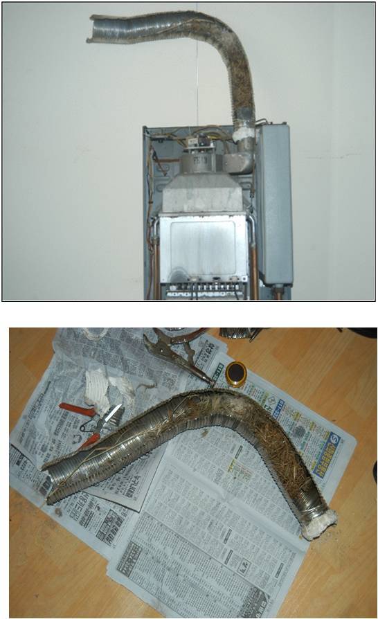 1) 하절기에 연도에 새집, 쥐집을 지어놓은 것을 모르고 보일러가동 할때