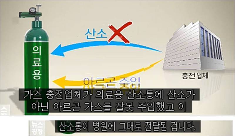 의료용과 공업용 가스 용기를 구분하기위한 안전관리 규정이 지켜지지 않는데다 확인하는 과정도 없어서 비슷한 사고가 또 일어날 수 있습니다.