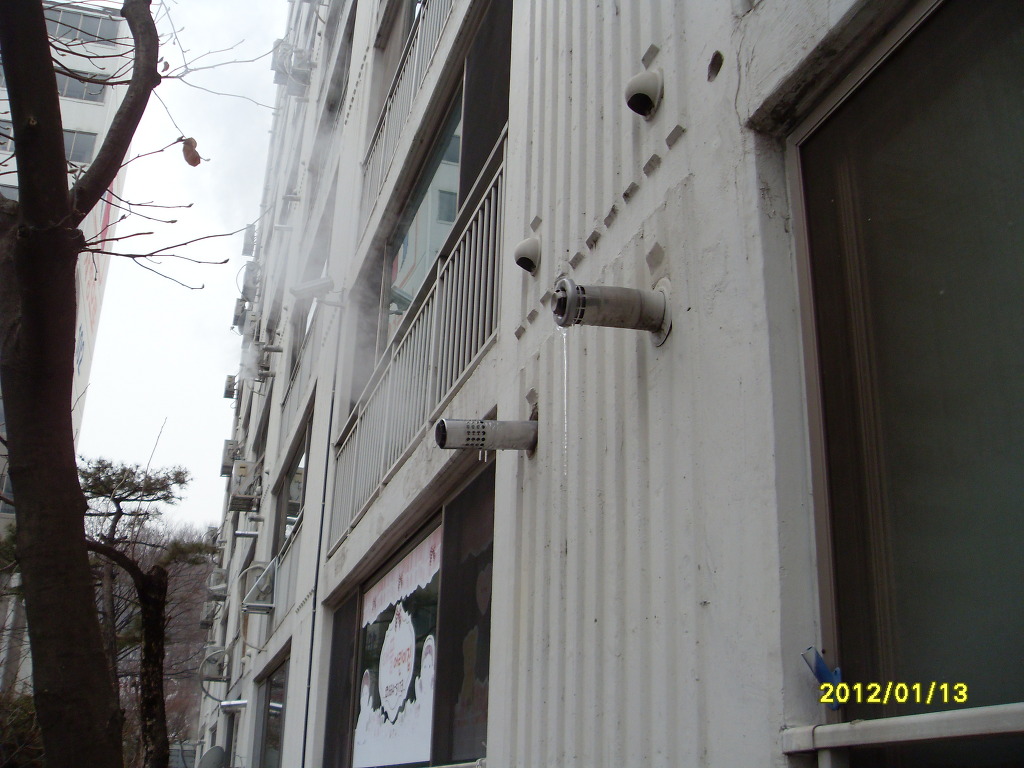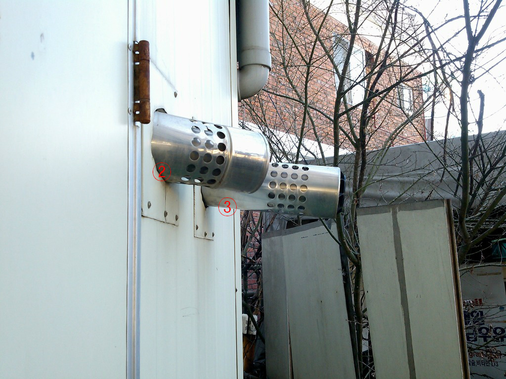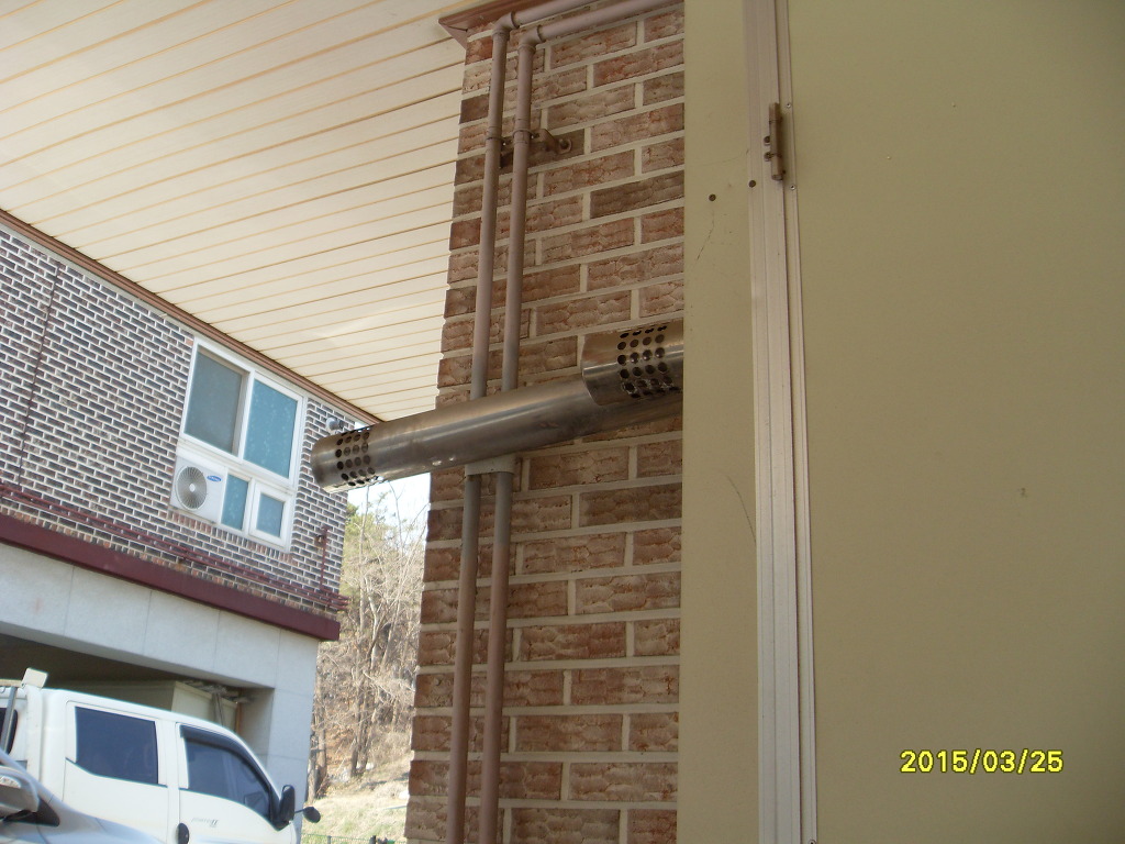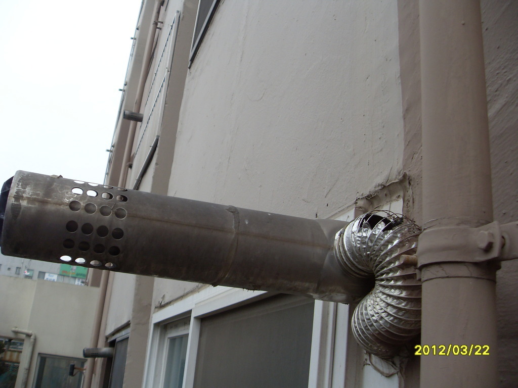 흡입구 위치에는 빗물 유입방지용원형 갓을 씌워 주는것이 보일러 내부부식방지및 효율이 향상될것으로 본다