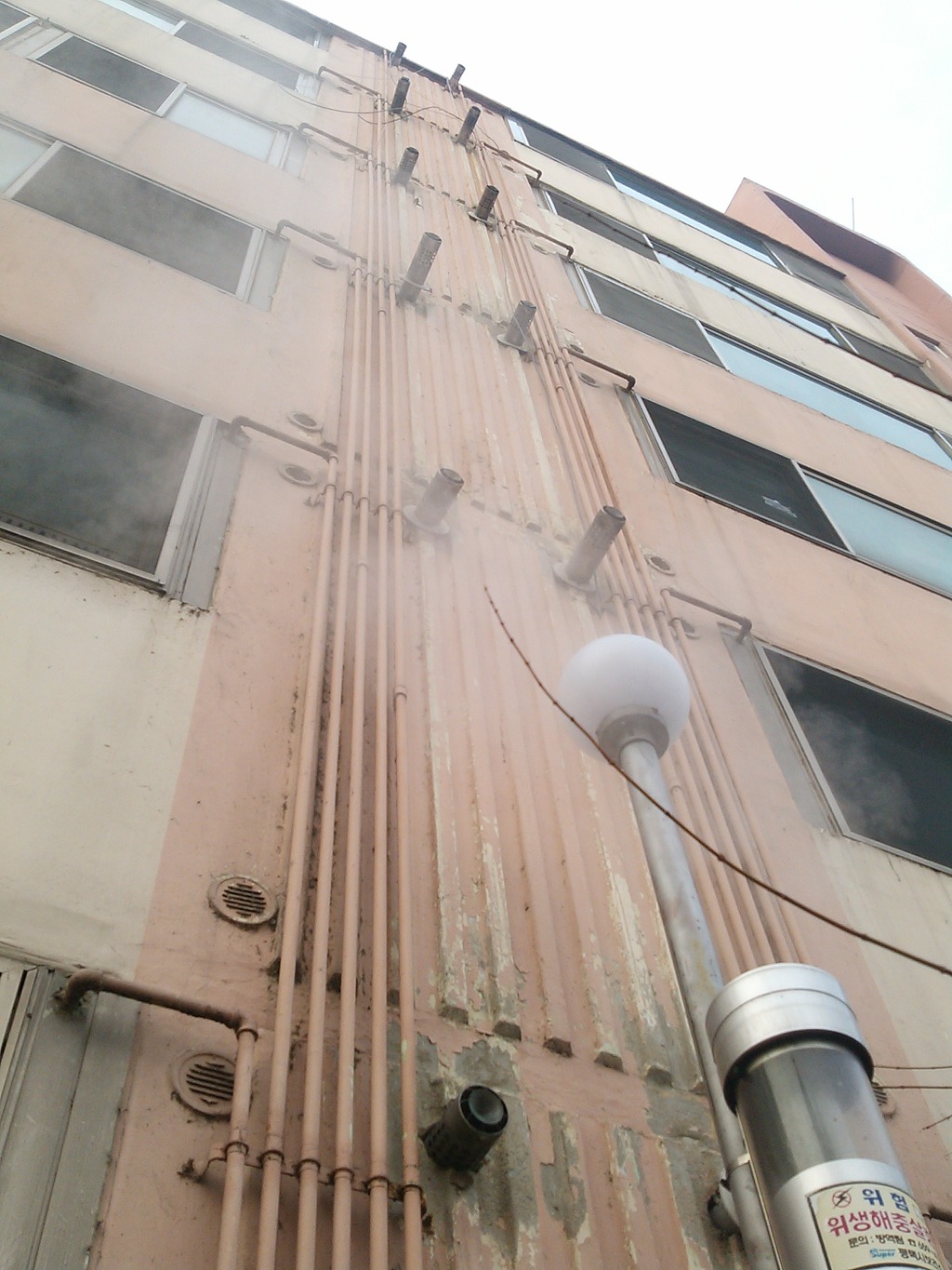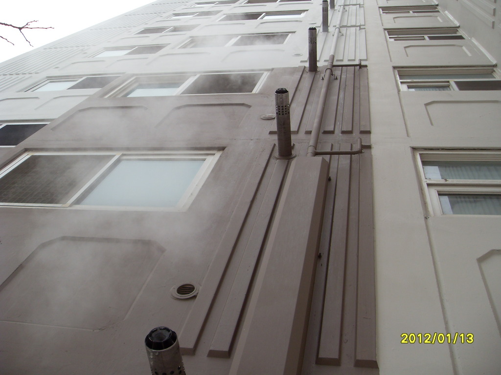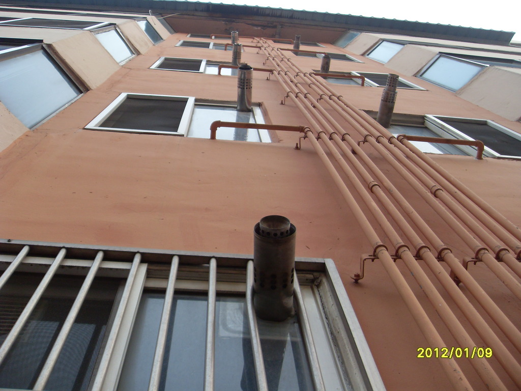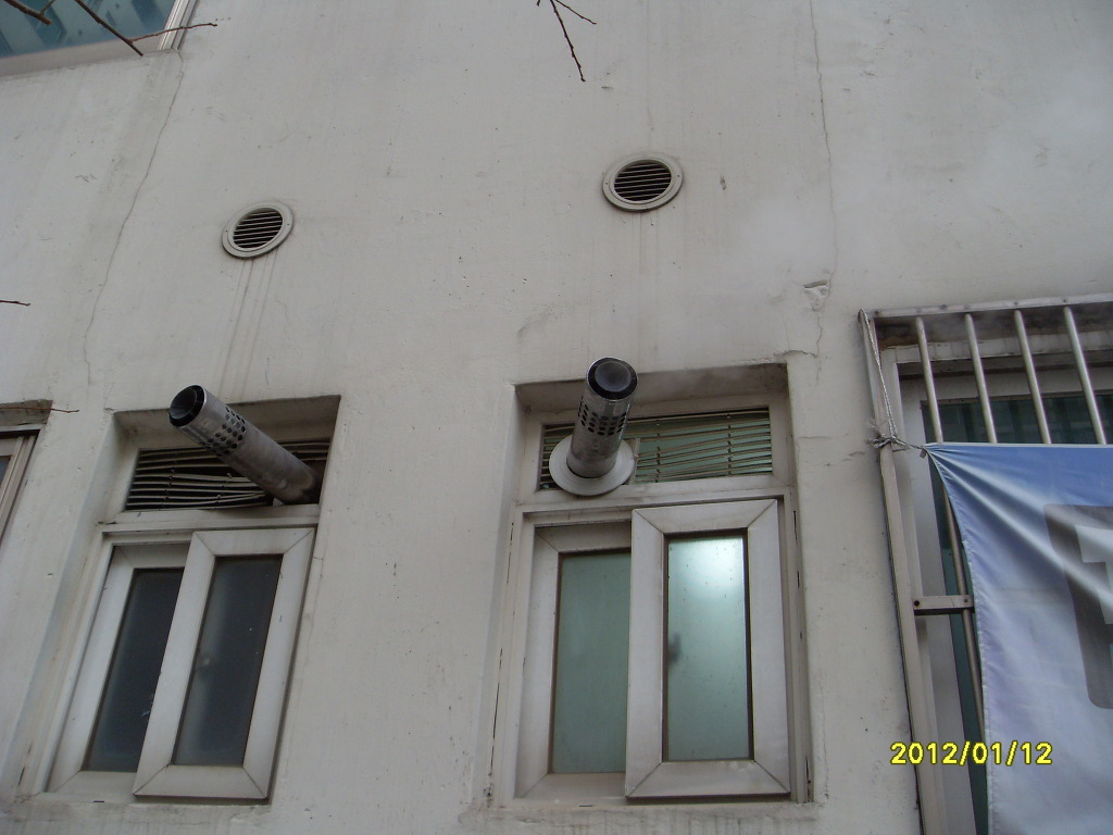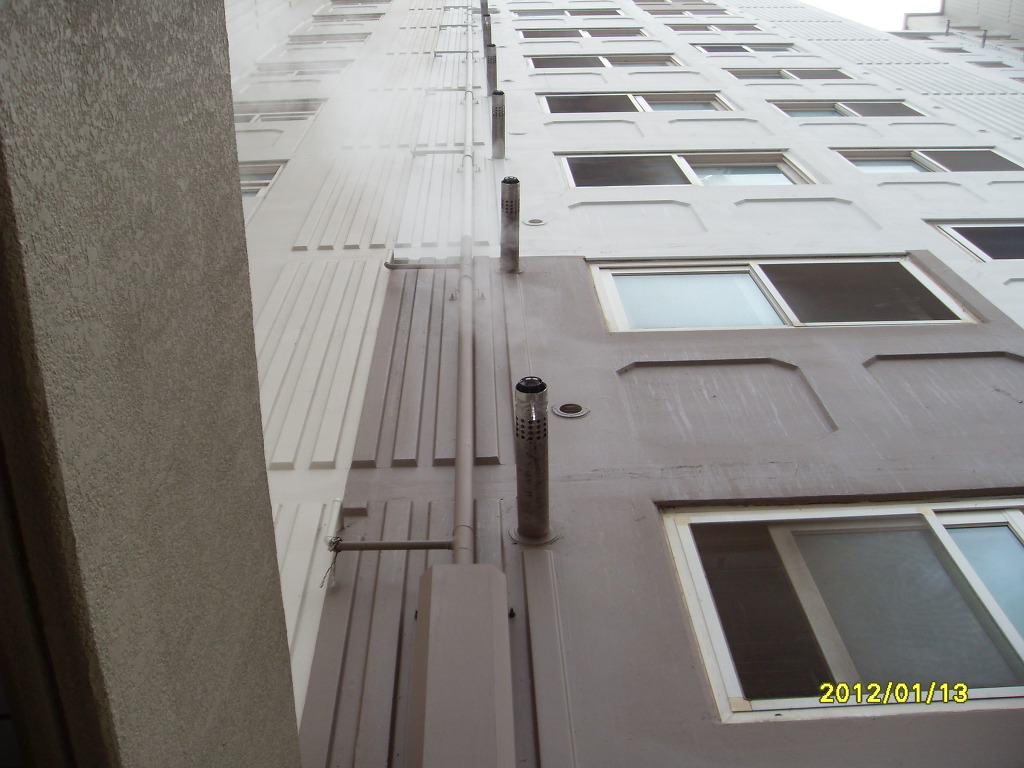 연도가 집결되어 있어 보일러를 많이 가동하는 겨울철에는 폐가스가 공기흡입구로 다시 흡입됨으로서