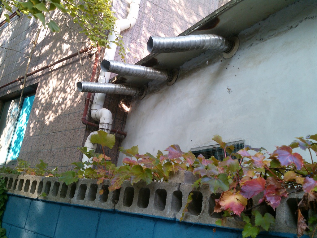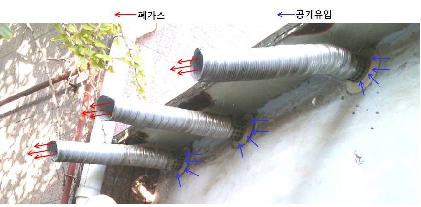 폐가스 배출구를 연장 하여 부착한 모습