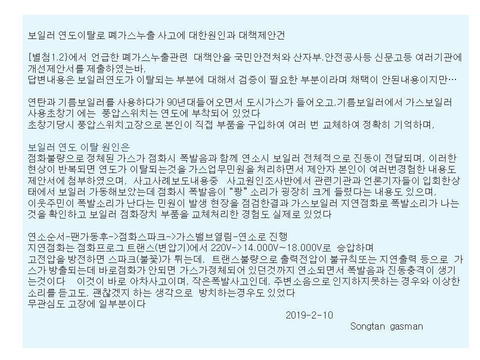 가스보일러 기본교육 [구조및 기능] 작성자남이섬|작성시간19.02.11|조회수2,069 목록 댓글 0 글자크기 작게가 글자크기 크게가 가스보일러 구조및 기능 온수,난방수 순환 에니매이션은 첨부파일ppt 쇼보기에서 확인 가스보일러 구조및기능(안전장치).pptx 첨부파일첨부된 파일이 22개 있습니다. jpg 파일 슬라이드4.jpg 다운로드 jpg 파일 슬라이드5.jpg 다운로드 jpg 파일 슬라이드7.jpg 다운로드 jpg 파일 슬라이드8.jpg 다운로드 jpg 파일 슬라이드9.jpg 다운로드 jpg 파일 슬라이드10.jpg 다운로드 jpg 파일 슬라이드12.jpg 다운로드 jpg 파일 슬라이드13.jpg 다운로드 jpg 파일 슬라이드14.jpg 다운로드 jpg 파일 슬라이드15.jpg 다운로드 jpg 파일 슬라이드16.jpg 다운로드 jpg 파일 슬라이드17.jpg 다운로드 jpg 파일 슬라이드18.jpg 다운로드 jpg 파일 슬라이드19.jpg 다운로드 jpg 파일 슬라이드20.jpg 다운로드 jpg 파일 슬라이드21.jpg 다운로드 jpg 파일 슬라이드22.jpg 다운로드 jpg 파일 슬라이드23.jpg 다운로드 jpg 파일 슬라이드6.jpg 다운로드 jpg 파일 대성기능설명-일반보일러.jpg 다운로드 jpg 파일 가스보일러 구조및기능-돋음글씨체.jpg 다운로드 pptx 파일 가스보일러 구조및기능(안전장치).pptx 다운로드 다음검색 현재 게시글 추가 기능 열기 북마크 공유하기 신고 센터로 신고 댓글 댓글 0 댓글쓰기 답글쓰기 댓글 리스트