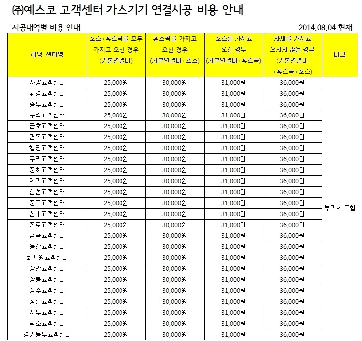 ※ 고객님께서 휴즈콕이나 가스호스를 가져오신 경우 해당 자재비를 절감하실 수 있습니다.