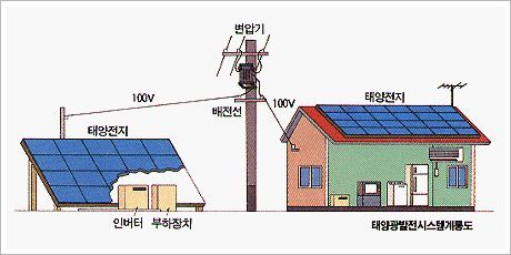 그러나, 태양 전지는 가격이 비싸 많은 태양광 발전 시스템의 건설에는 초기 투자가 요구되므로 상용 전력에 비하여 발전 단가가 높고, 일사량에 따른 발전량 편차가 심하므로 안정된 전력 공급을 위한 추가적인 건설비 보완이 필요한 단점이 있다. 이러한 태양광 발전 시스템의 기상 조건에 따른 제약과 이용 기술상의 문제점은 기술 개발과 실증 실험을 통하여 개선될 수 있으나 초기의 많은 설비 투자와 높은 발전 가격은 태양광 발전의 보급에 있어서 선결되어야 할 당면 과제이다.