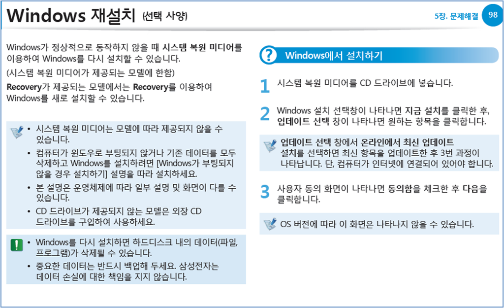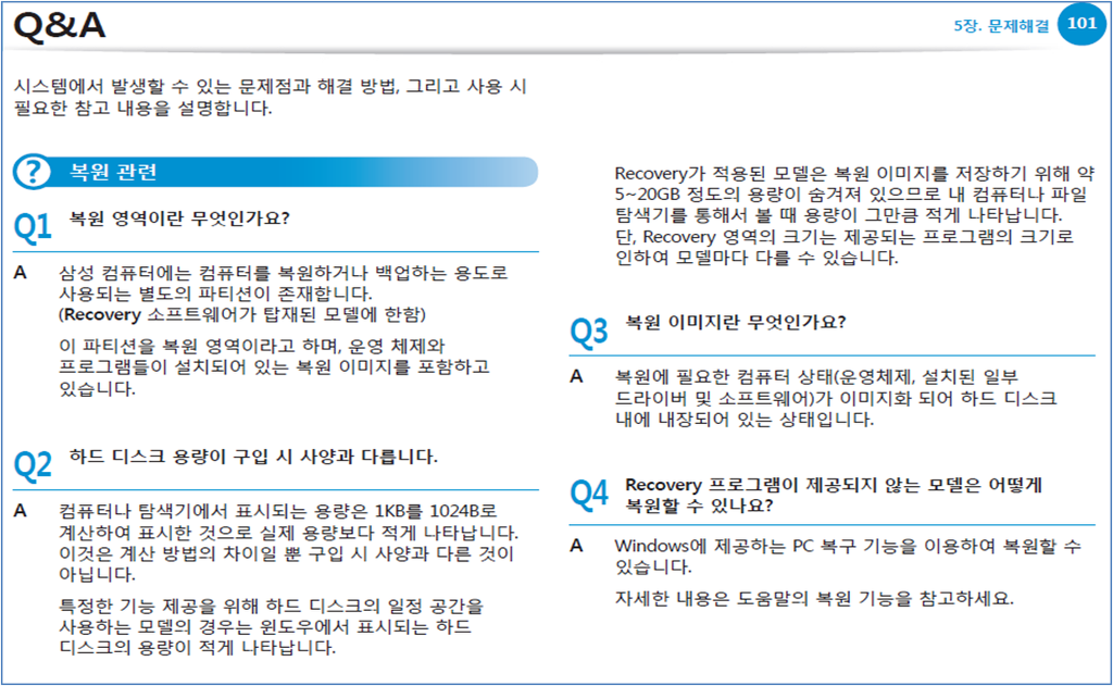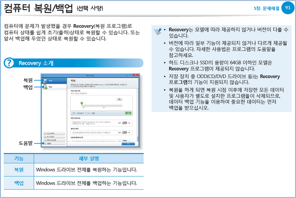 출 처 : 삼성노트북 Recovery프로그램 도움말