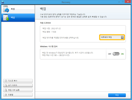 네트워크 백업을 하려면 네트워크 백업/복원하기를 참조하시기 바랍니다
