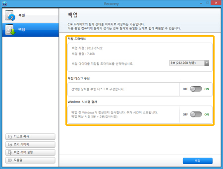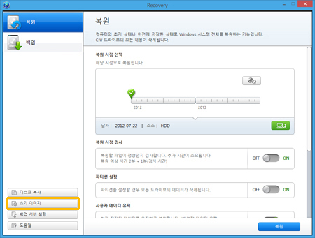 복원 영역에 저장된 초기 이미지를 다른 저장장치나 드라이브에 백업한 후 필요 시 복원할 수 있습니다