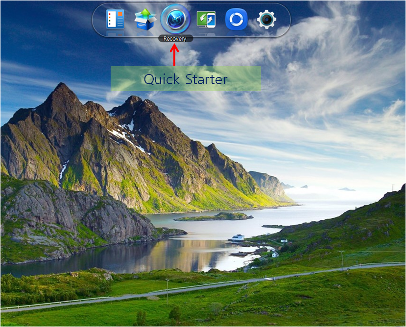 - 바탕화면의 Recovery 아이콘을 실행하거나 컴퓨터 부팅 시 F4를 누르면 복원 영역으로 진입을 하게 되며, 현재 상태를 백업하거나 복원을 실행할 수 있습니다.