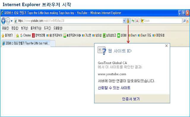Windows XP에서 유튜브사이트 안열릴때 주소줄에 자물쇠 채워져 있다면