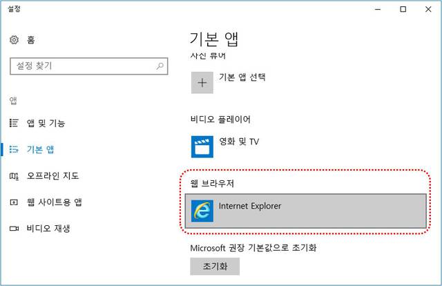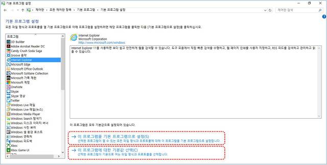 기본앱이 Internet Explorer로 변경완료