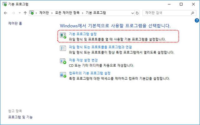 제어판->기본프로그램->기본프로그램설정