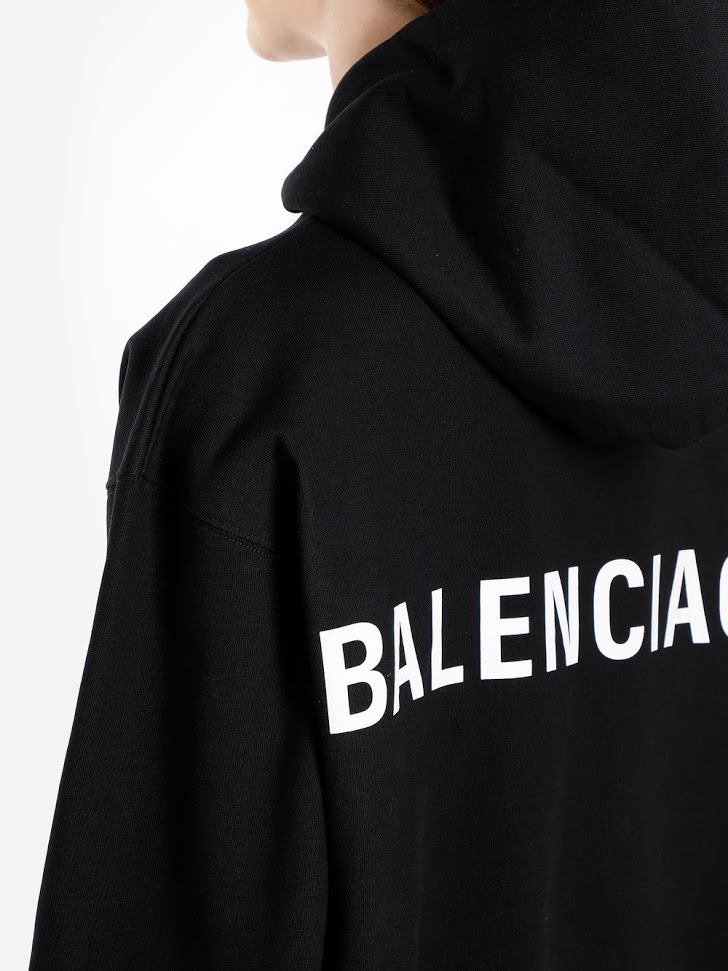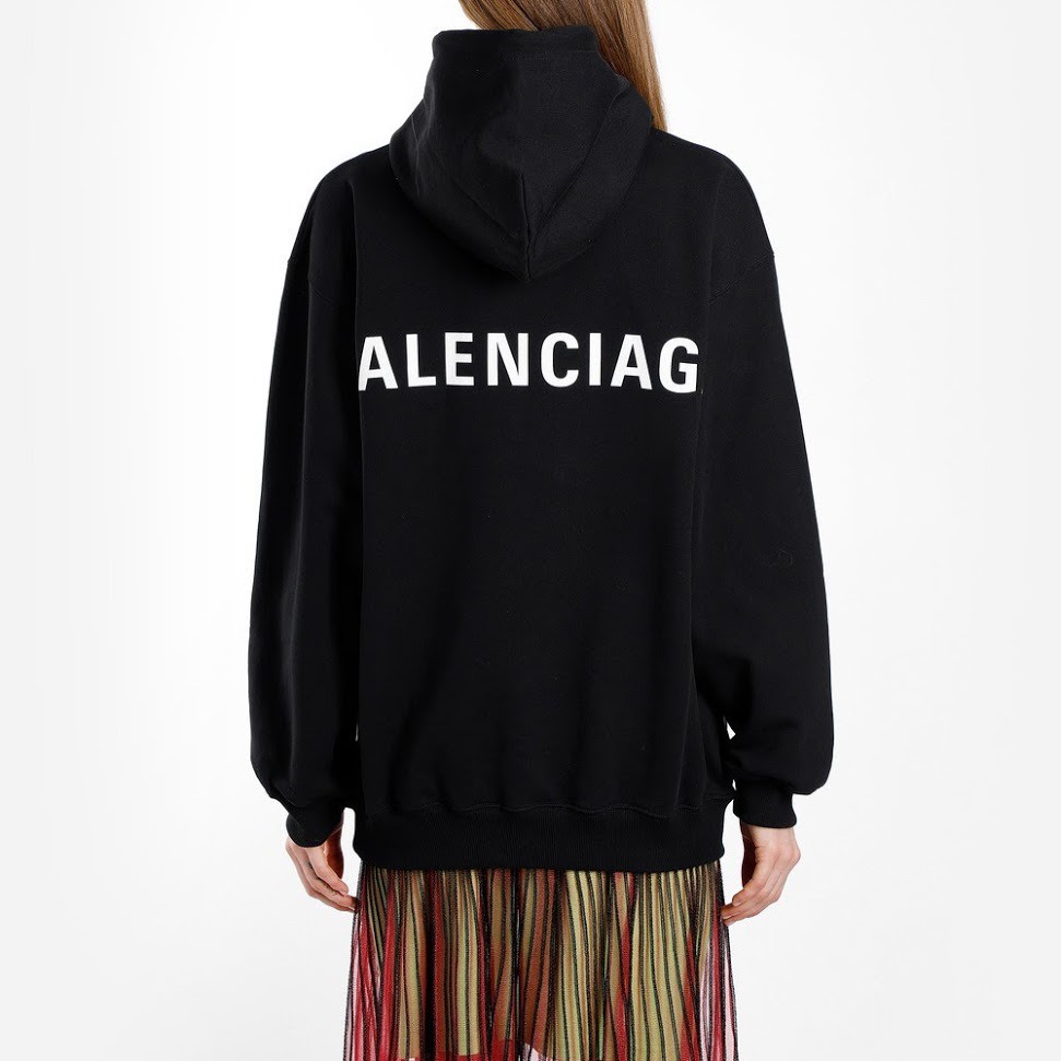 ◈ 모델명 _ 발렌시아가 18FW 518215 TAV37 1000 로고 후드 블랙