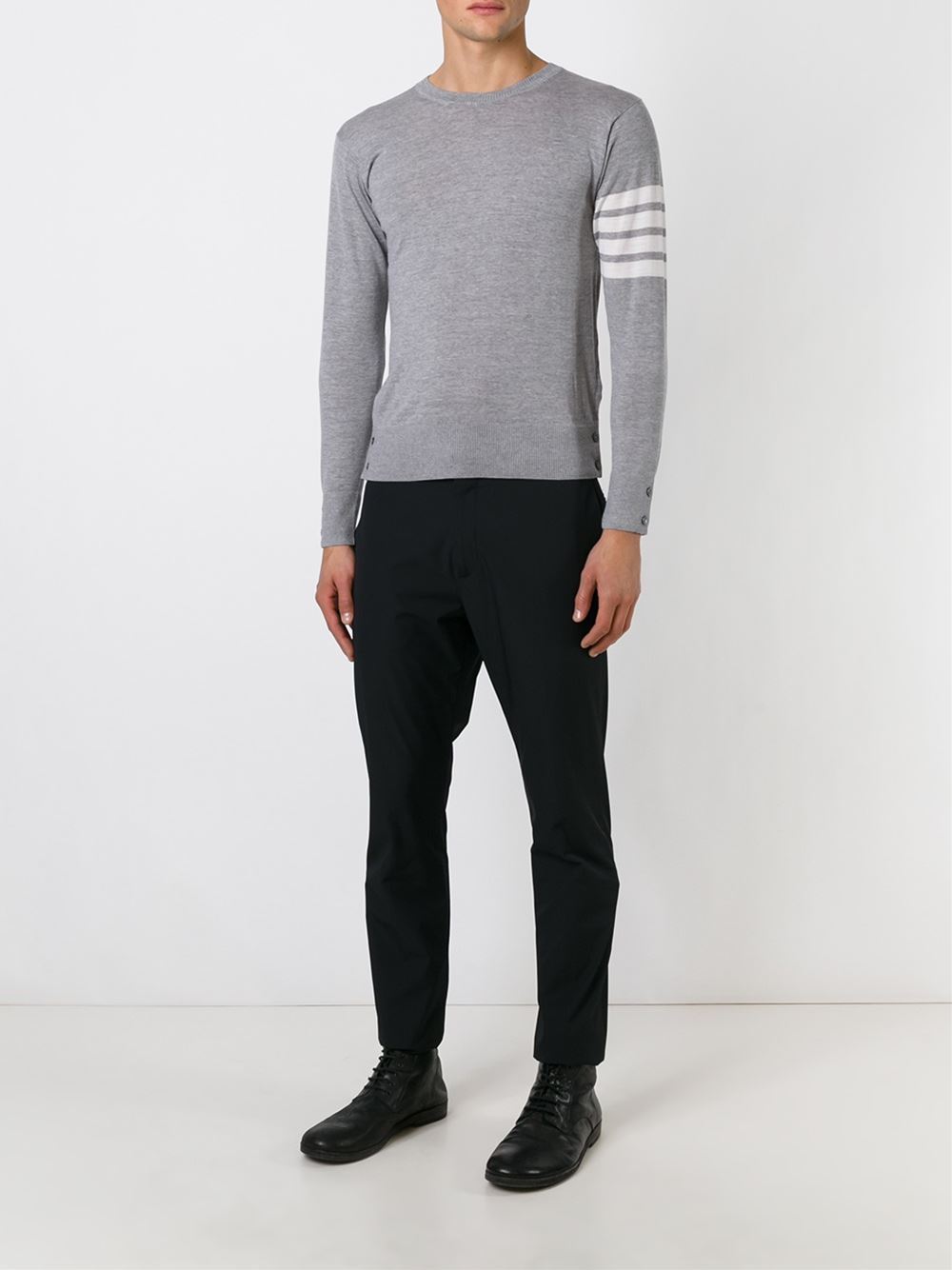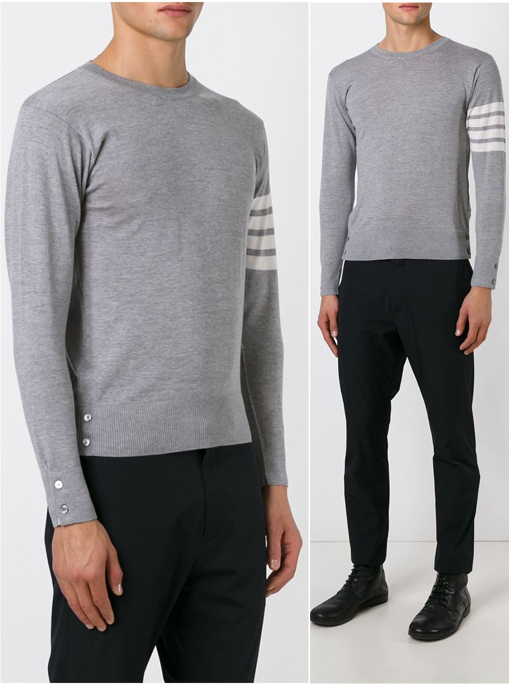 ◈ 품명 _ 톰브라운 20SS 사선완장 메리노울 니트 라이트그레이 MKA002A00014 058