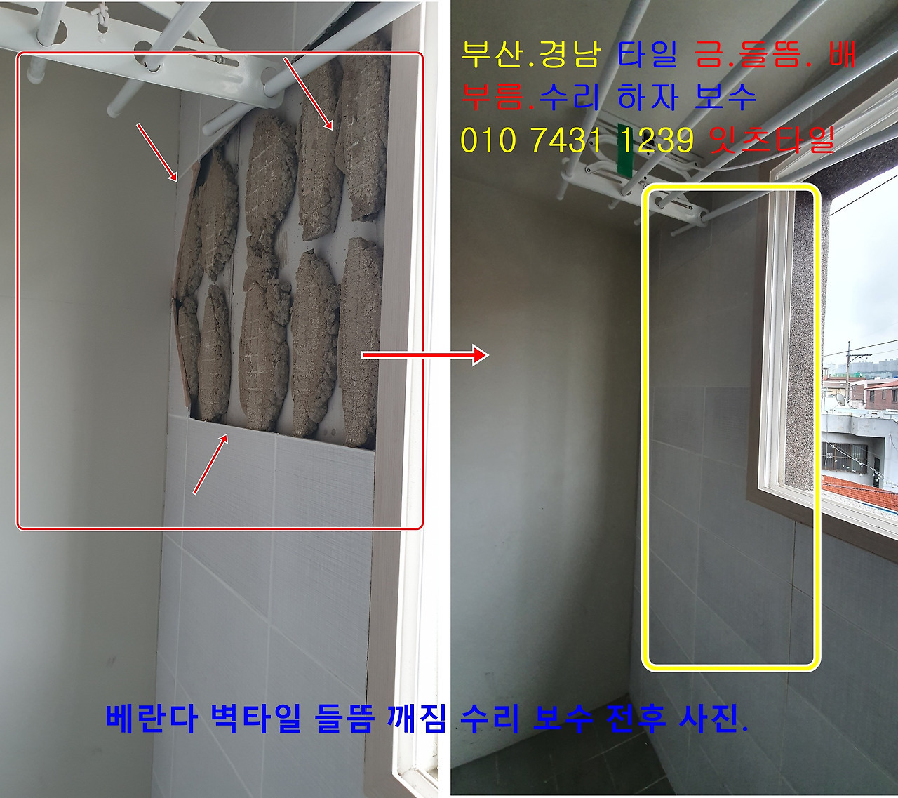 타일 벽 바닥 금 팽창 터짐 깨짐 구멍 솟음 크랙 하자보수