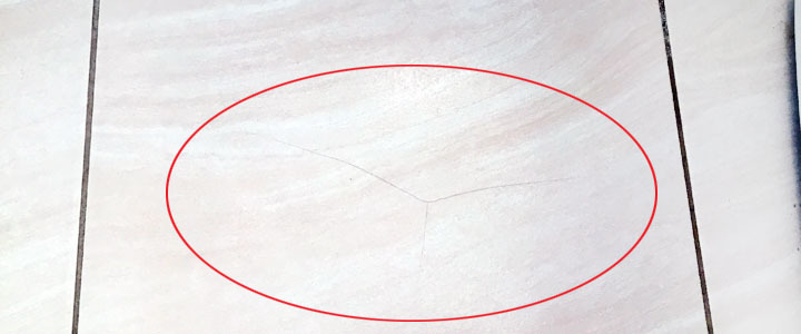 타일 균열이 두 개의 서로 다른 바닥 표면의 접합부를 따라 발생하는 경우(예: 목재 바닥이 타일 바닥과 만나는 경우) 이는 접합부의 움직임을 나타낼 수 있습니다.