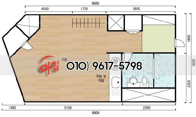 광화문 용비어천가 오피스텔 18평형 스튜디오형 내부의 모습이에요. 원목마루의 바닥과 빌트인 되어 있는