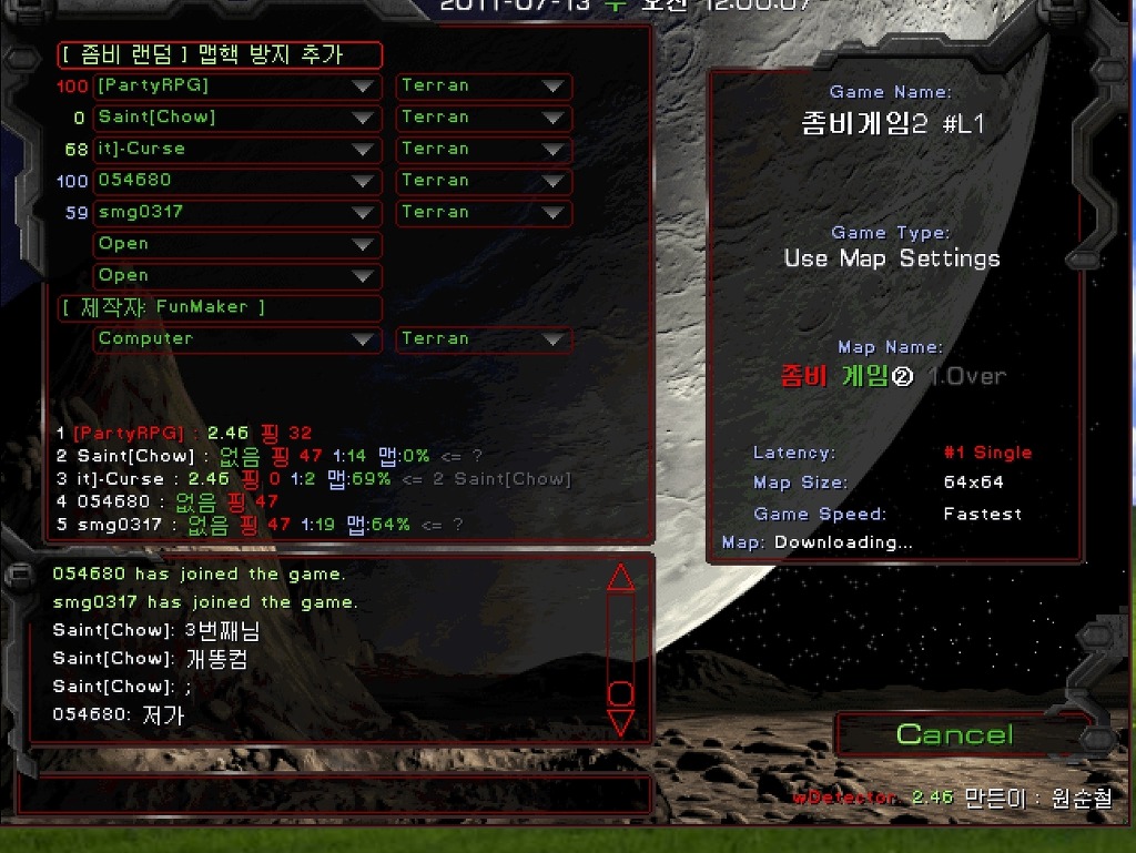 아쿠아런처 플러그인을 사용하고 있기에 아이디 옆에 맵다하는게 보이고 아쿠아런처는 연두색으로 표시되는게 보이실껍니다.