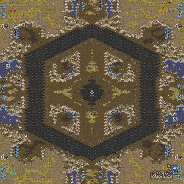 ⑥ 전체적인 전장은 중앙으로 노출된 4개의 언덕멀티와 이를 둘러싼 고리형태의 외곽전장, 외곽전장 내부를 가로지르는 내곽전장으로 구성된 형태로, 병력을 끊임없이 돌려가며 운영하는 기동성이 중요한 맵이다.
