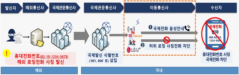 또 범죄조직이 국내에 있는 이용자의 전화번호를 도용해 해외 로밍 형태로 전화번호를 거짓 표시해 가족을 사칭하는 등 보이스피싱에 악용하는 것을 예방하기 위해, 국내에 있는 것이 명확한 경우 해당 번호의 정상로밍 여부 등을 확인한 후 국제전화 수신을 차단할 계획이다.