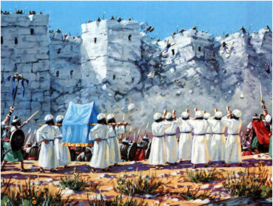 모세의 후계자 여호수아 장군의 인도로 팔레스틴 지역으로 들어온 이스라엘 민족이 가나안땅에 있는 성중에 최초로 공격한 성이 여리고 성이다. 다른 성은 열심히 전쟁을 해서 빼앗았는데, 여리고 성은 기적으로 빼앗았다고 성경에 기록되어 있다. 먼저 여호수아 6장 15-17절을 보면 "제 칠일 새벽에 그들이 일찌기 일어나서 여전한 방식으로 성을 일곱 번 도니 ... 일곱 번째에 제사장들이 나팔을 불 때에 여호수아가 백성에게 이르되 '외치라...' 이에 백성은 외치고 제사장들은 나팔을 불매 백성이 나팔소리를 듣는 동시에 크게 소리질러 외치니 성벽이 무너져 내린지라" 이렇게 기록되어 있다.