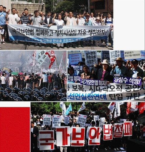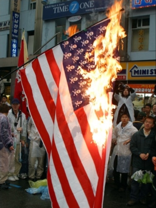 국가보안법 폐지, 주한미군 철수를 부르짖으며 성조기를 불태우는 좌익세력들
