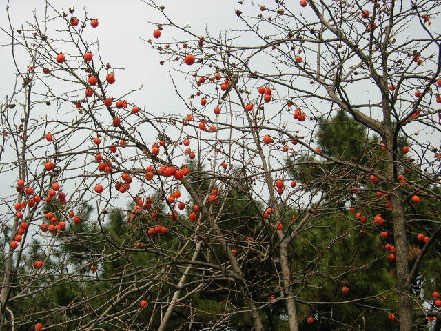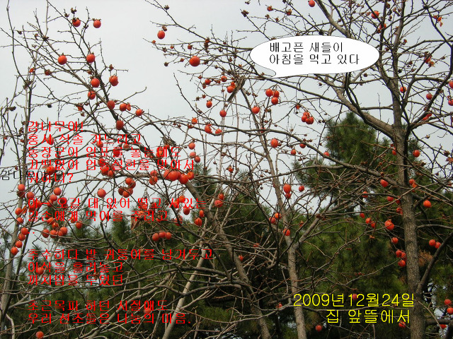 그래서 윗 부문은 절단이 나고 아래 기슭에만 홍시가 남아있다