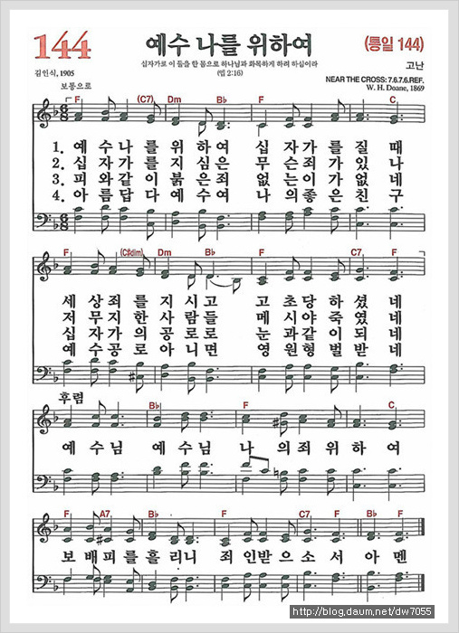 예수 나를 위하여 [찬양*악보*가사] - 새찬송가 144 장