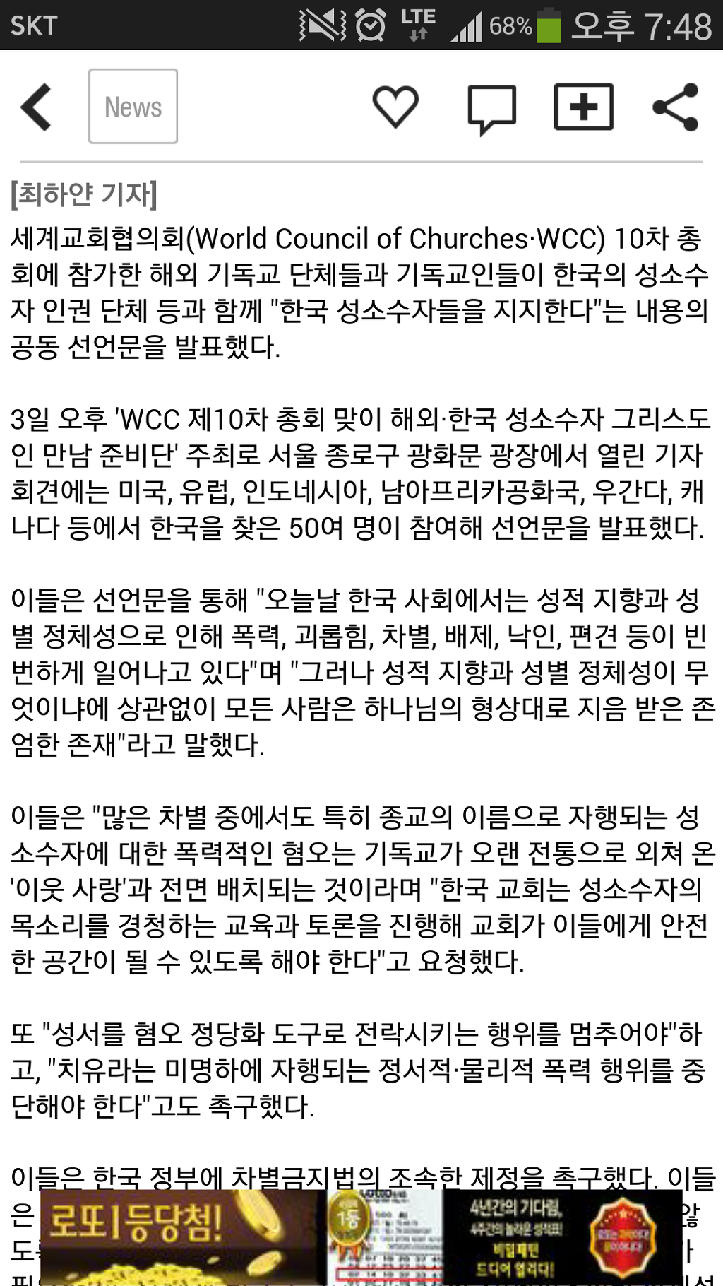 동성애자의 영혼을 위해 동성애의 죄에서 돌이키라는 외침이 있는 한국 교회의 진정한 이웃 사랑이 미움과 차별로 보이겠지.