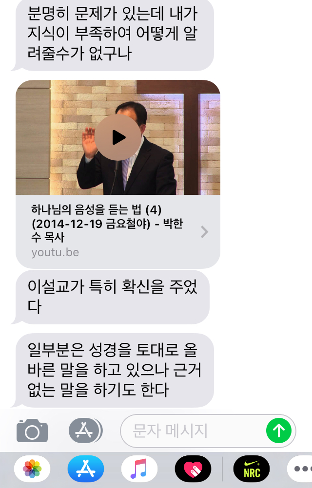 저(청년입니다) 제 친구에게 설교를 공유 하였고 저에게 온 문자를 올립니다.