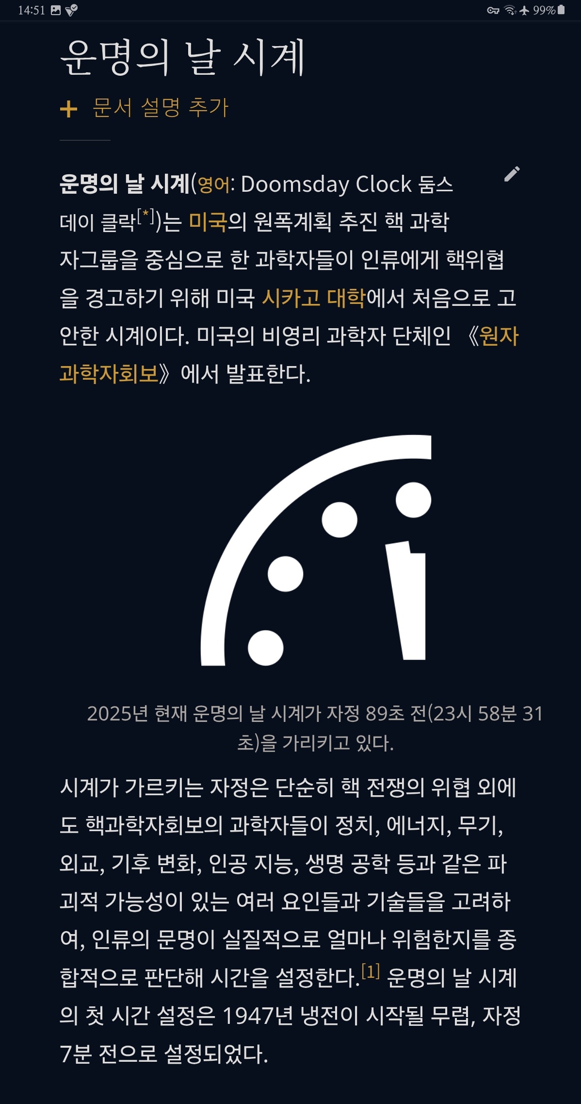 그런데 미국 최고의 핵과학자들이 세상종말을 언급하면