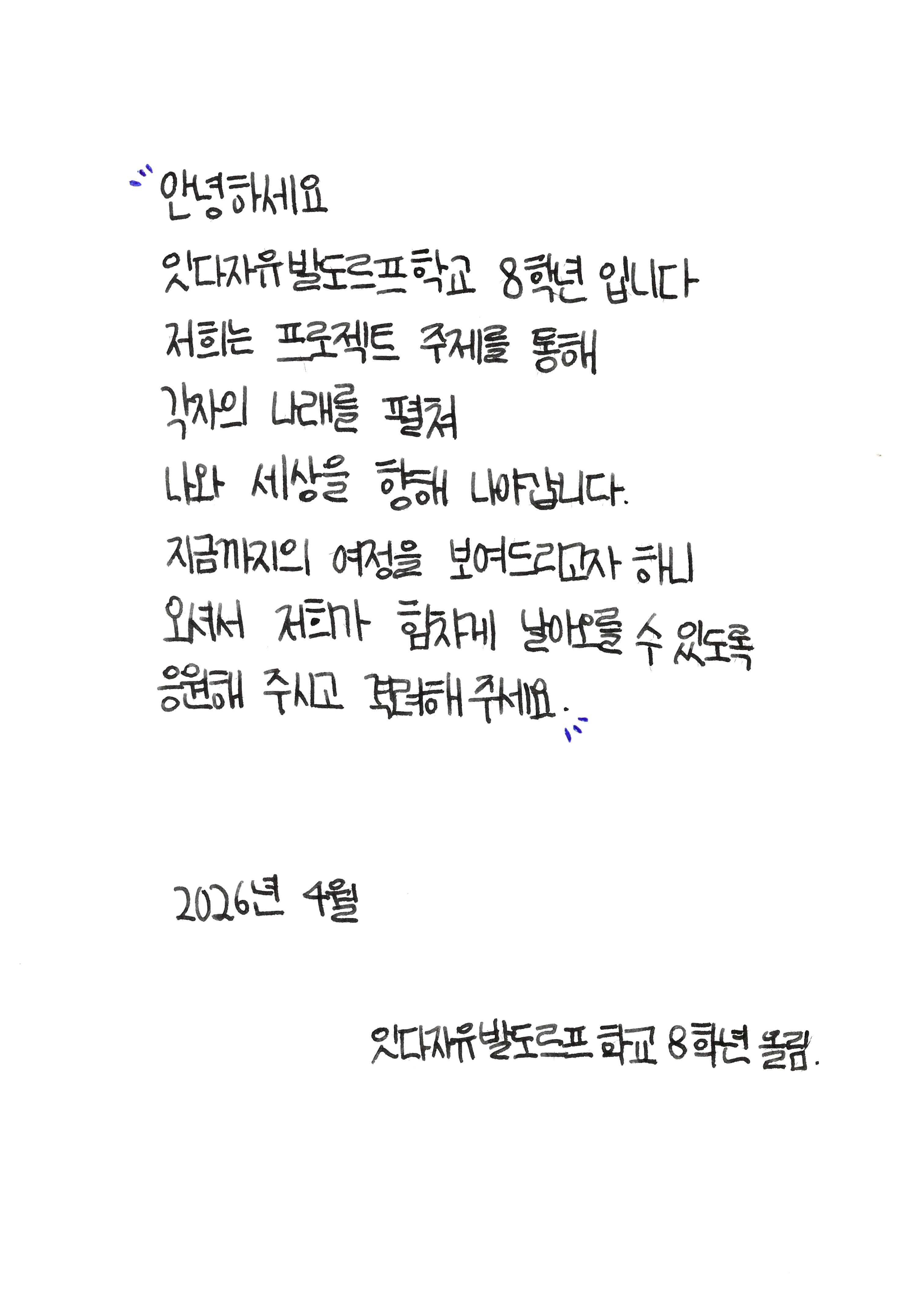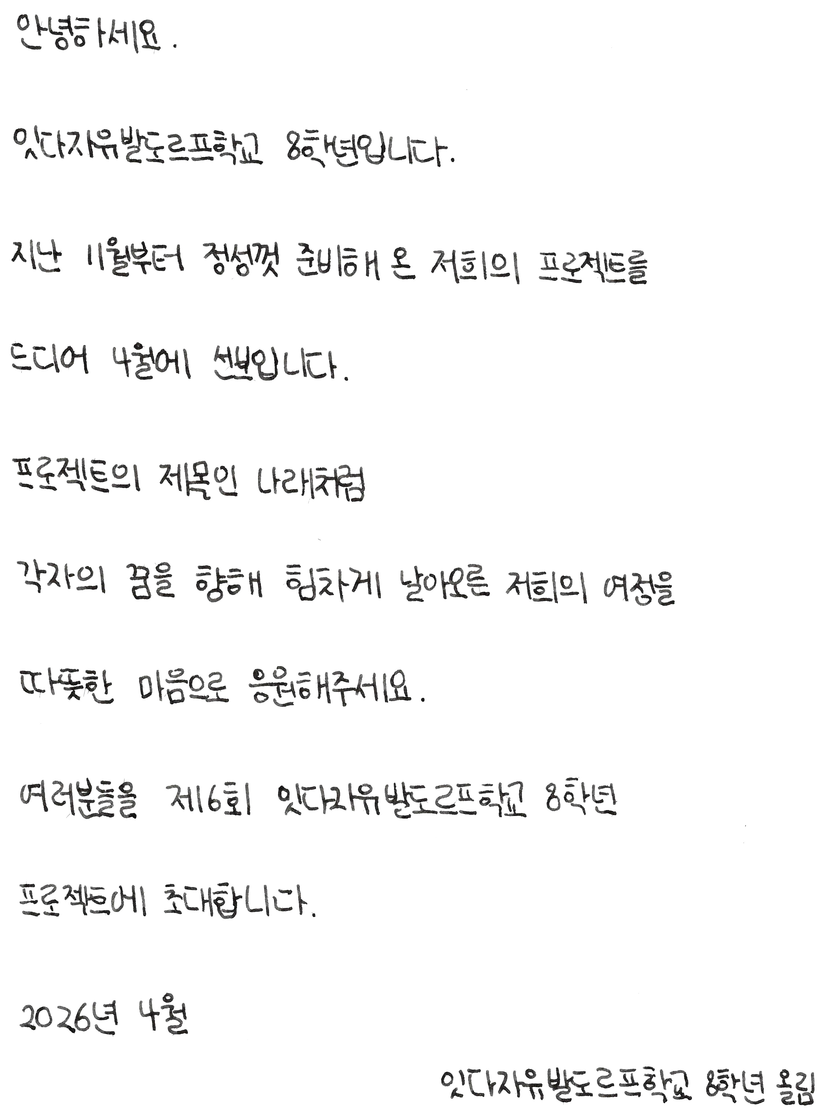 2026년 8학년 프로젝트발표회에 여러분을 초대합니다.