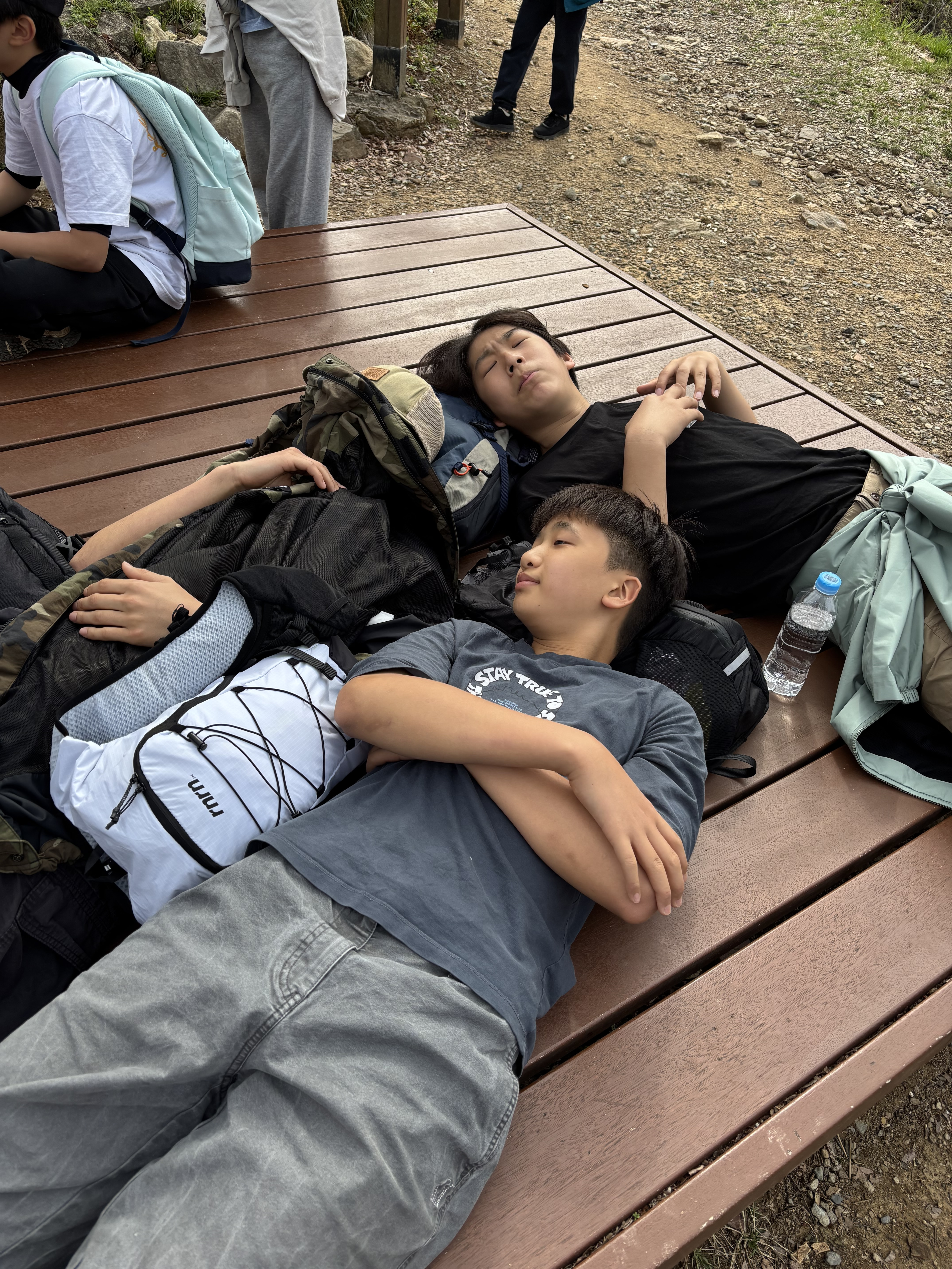 몸이 무거워진 형아들은 벌써 눕습니다. 일어나거라~ 아직 멀었다.