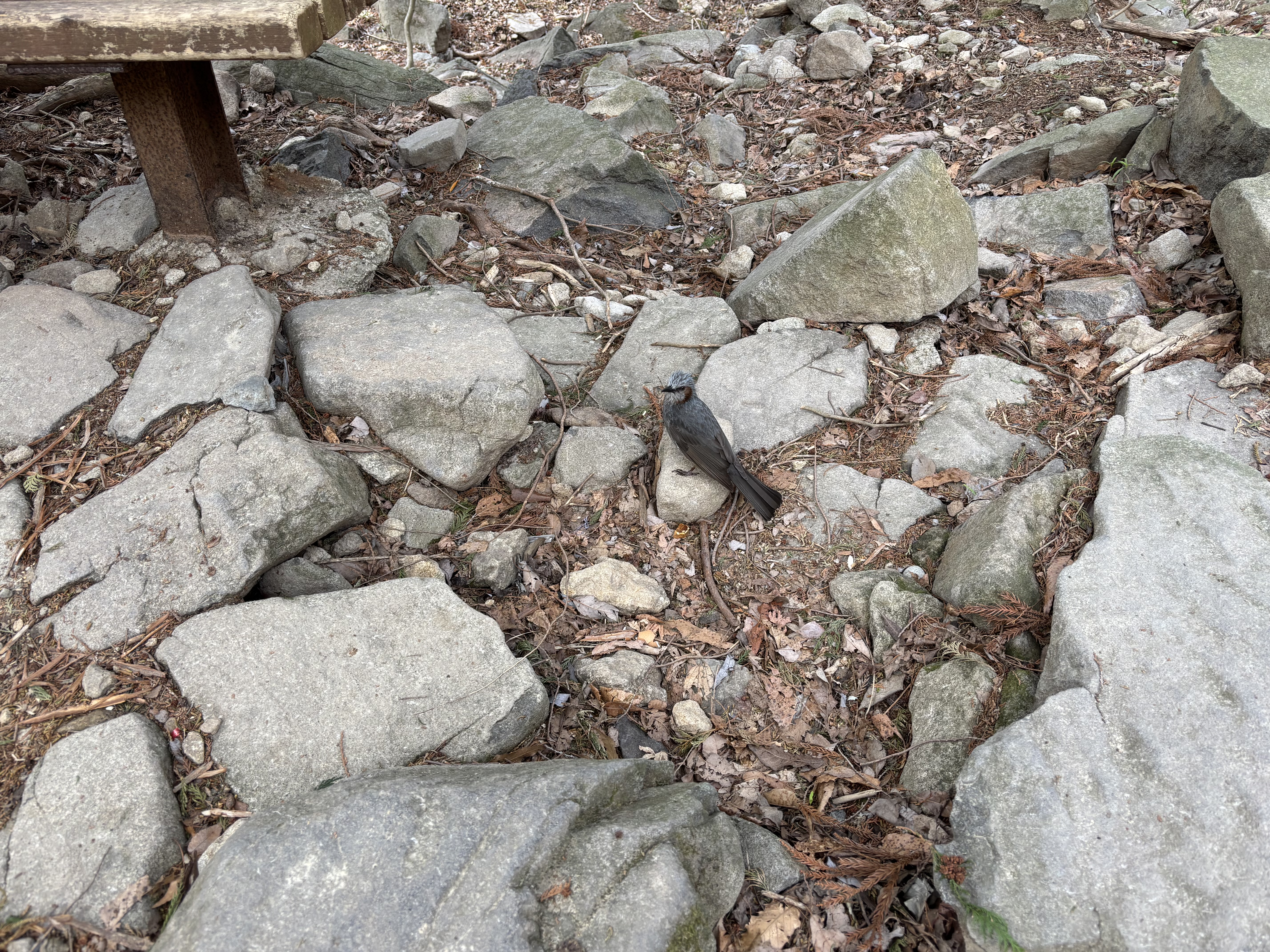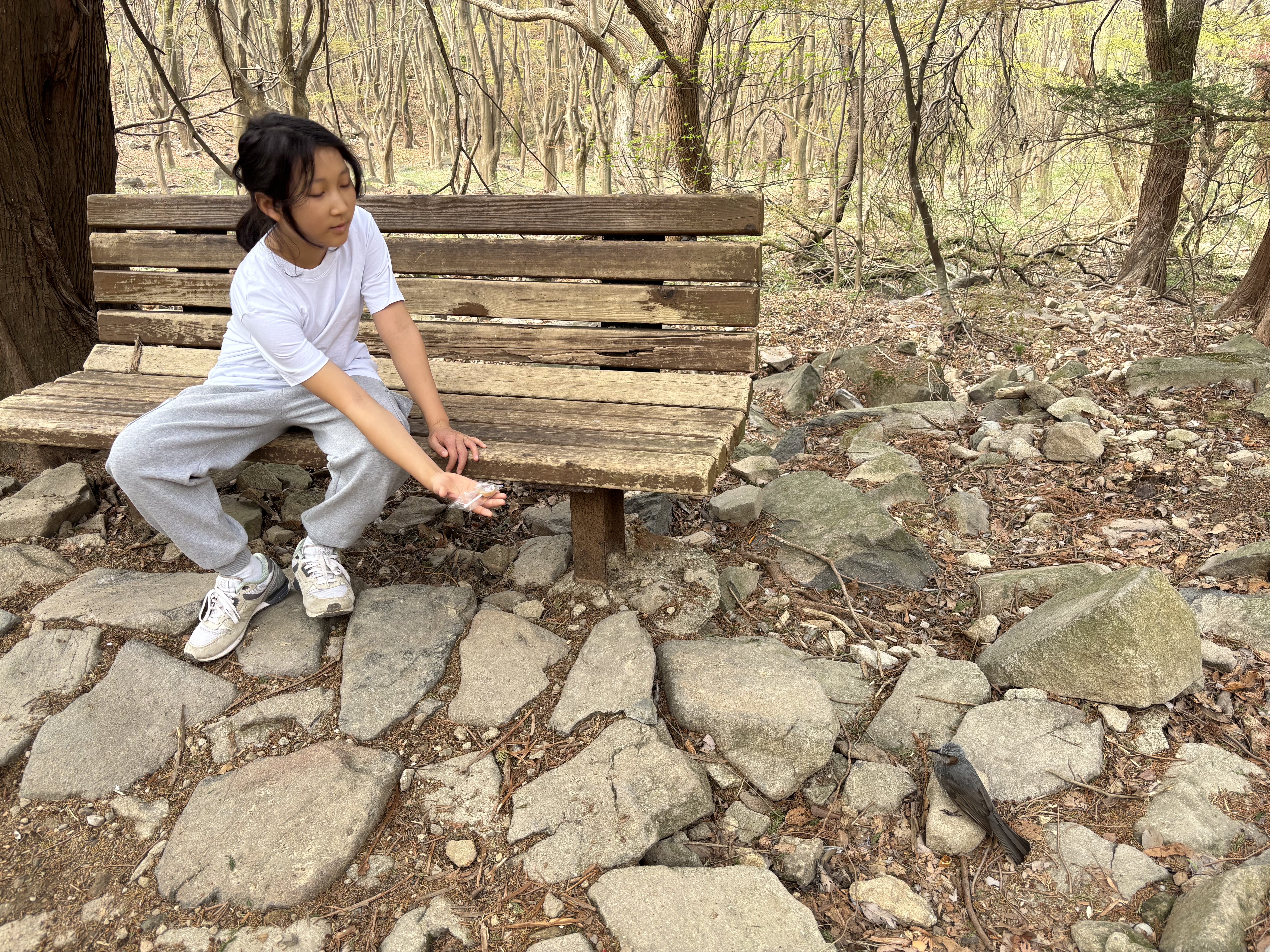 당산나무 지나 어느 길에서 만난 사람 안 무서워하는 새. 등산객들에게 간식 받아 먹는 재미를 안 듯해요.