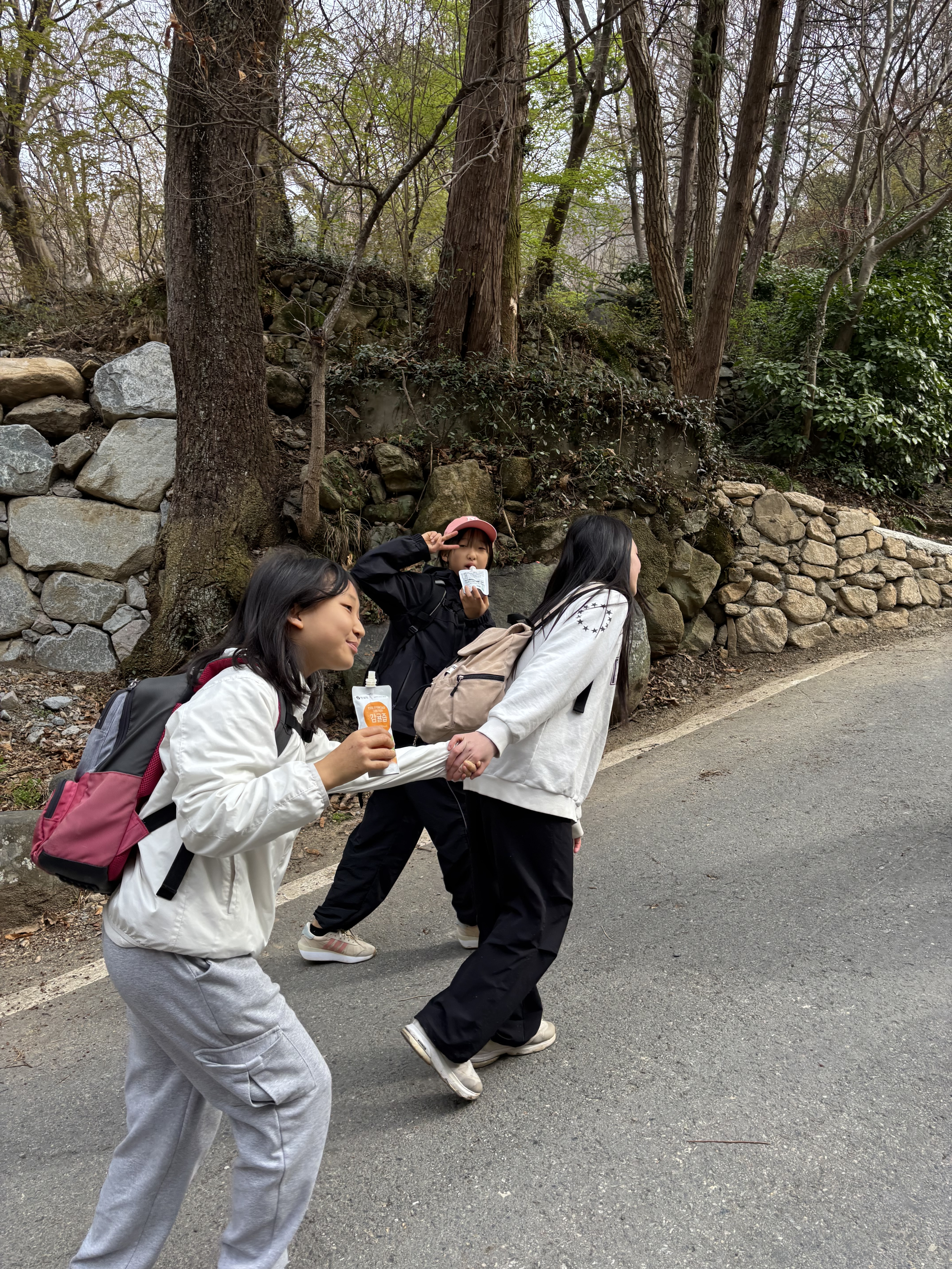서로 끌어주며 오르막길을 올라요. 그 모습이 참 기특합니다. 앗, 그런데 벌써 간식 먹는거니?!!^^