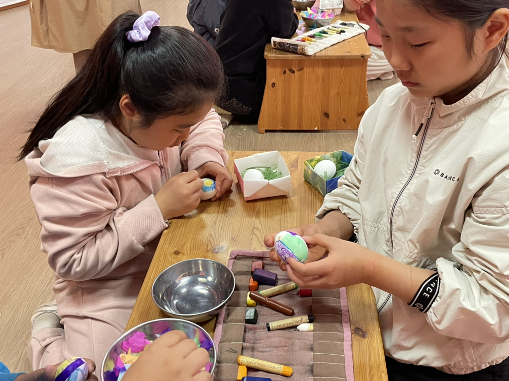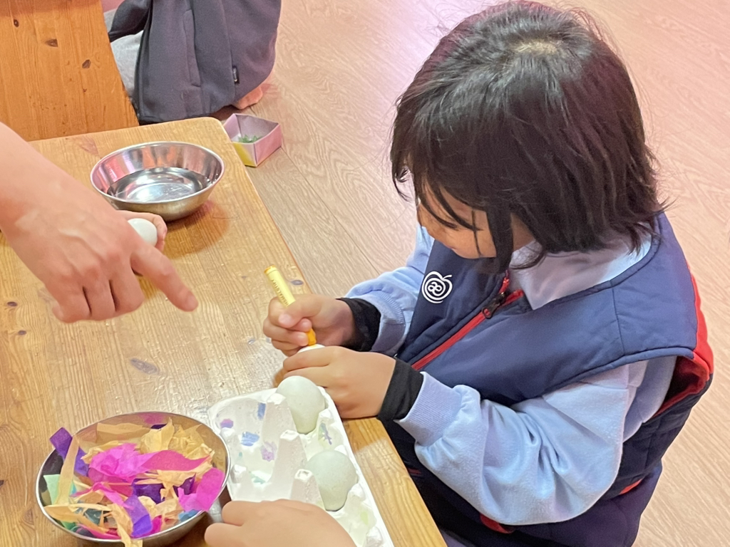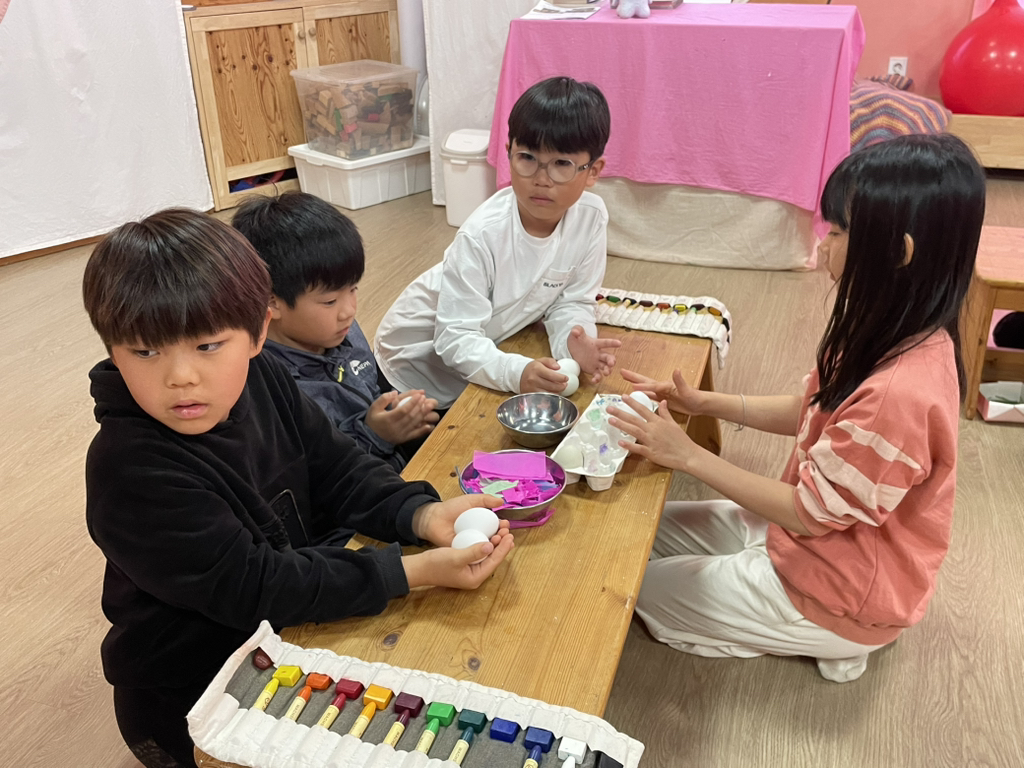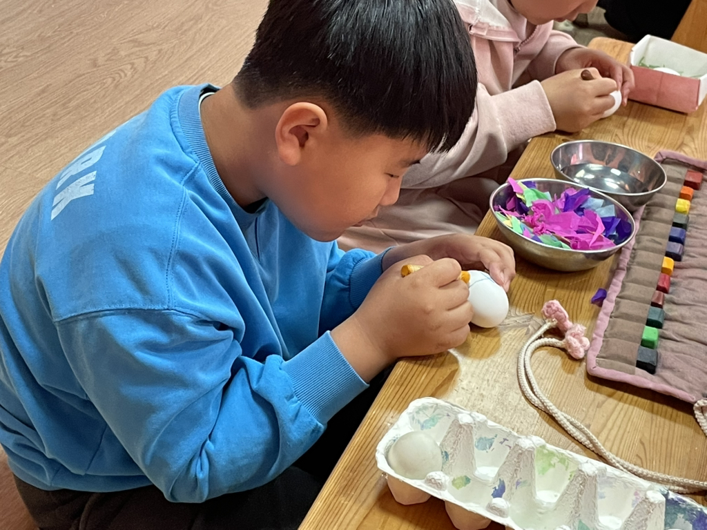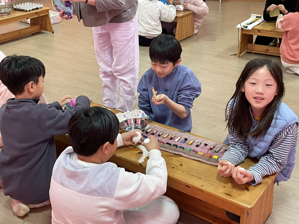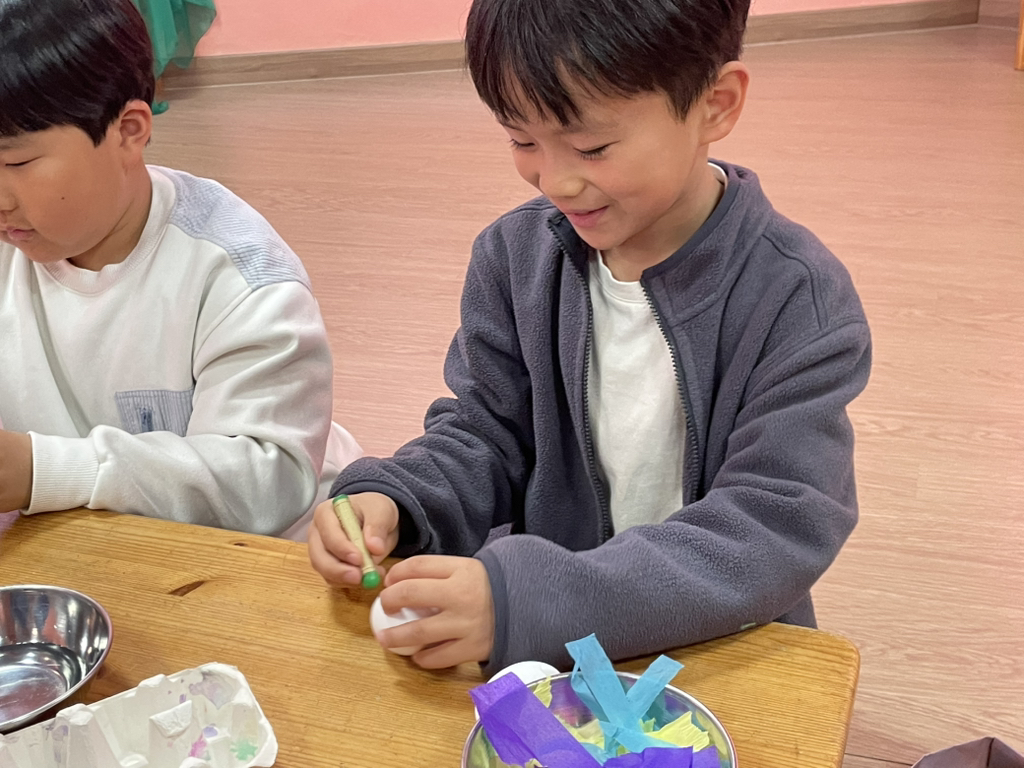 아이들도 토끼처럼 봄의 시작을 알리기 위해 다양한 빛깔의 달걀을 만들어보았네요~