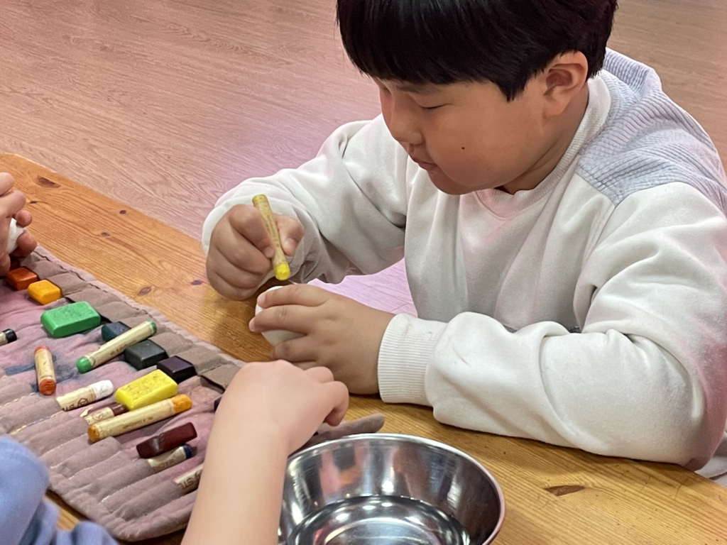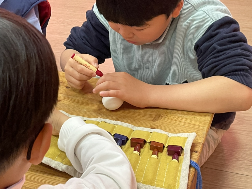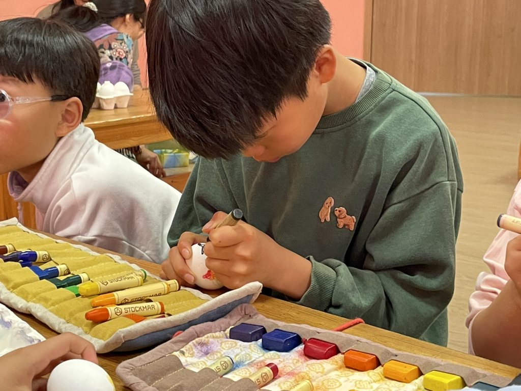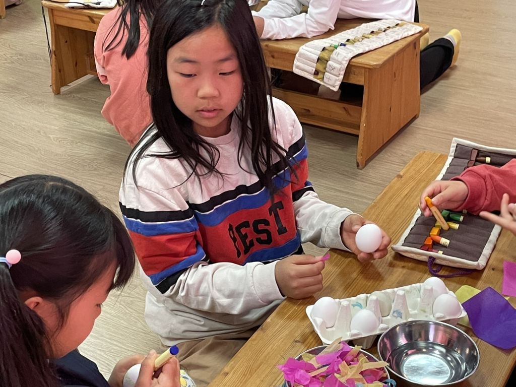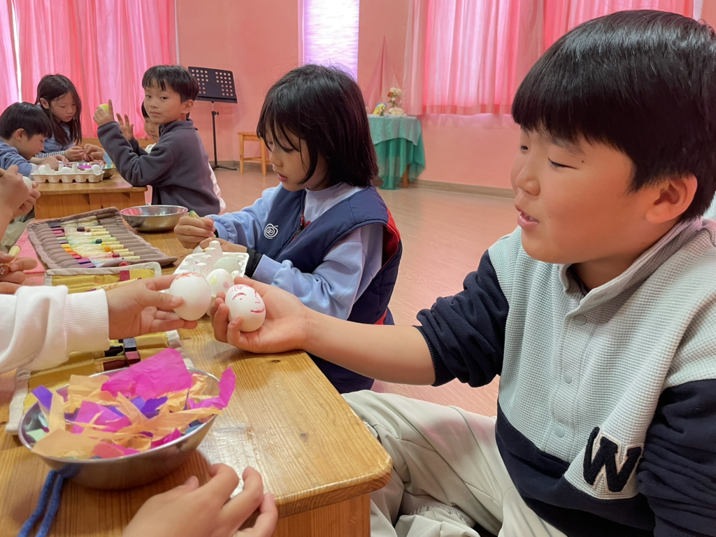 아이들도 토끼처럼 봄의 시작을 알리기 위해 다양한 빛깔의 달걀을 만들어보았네요~