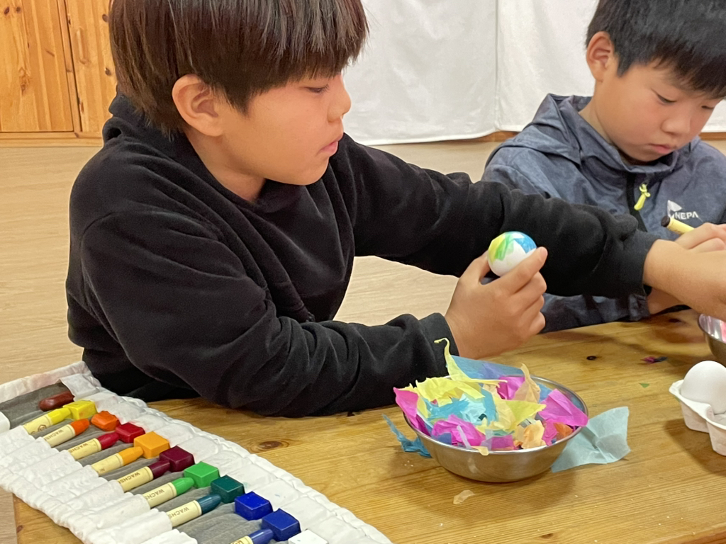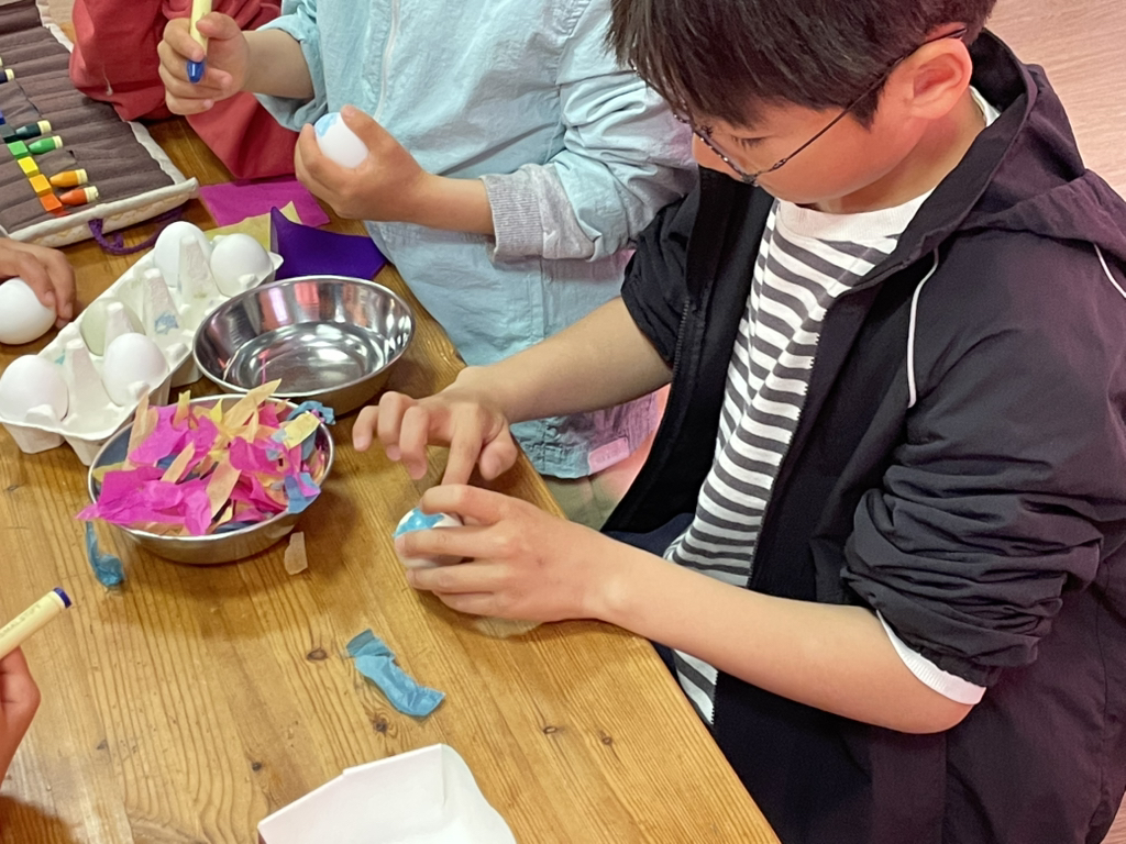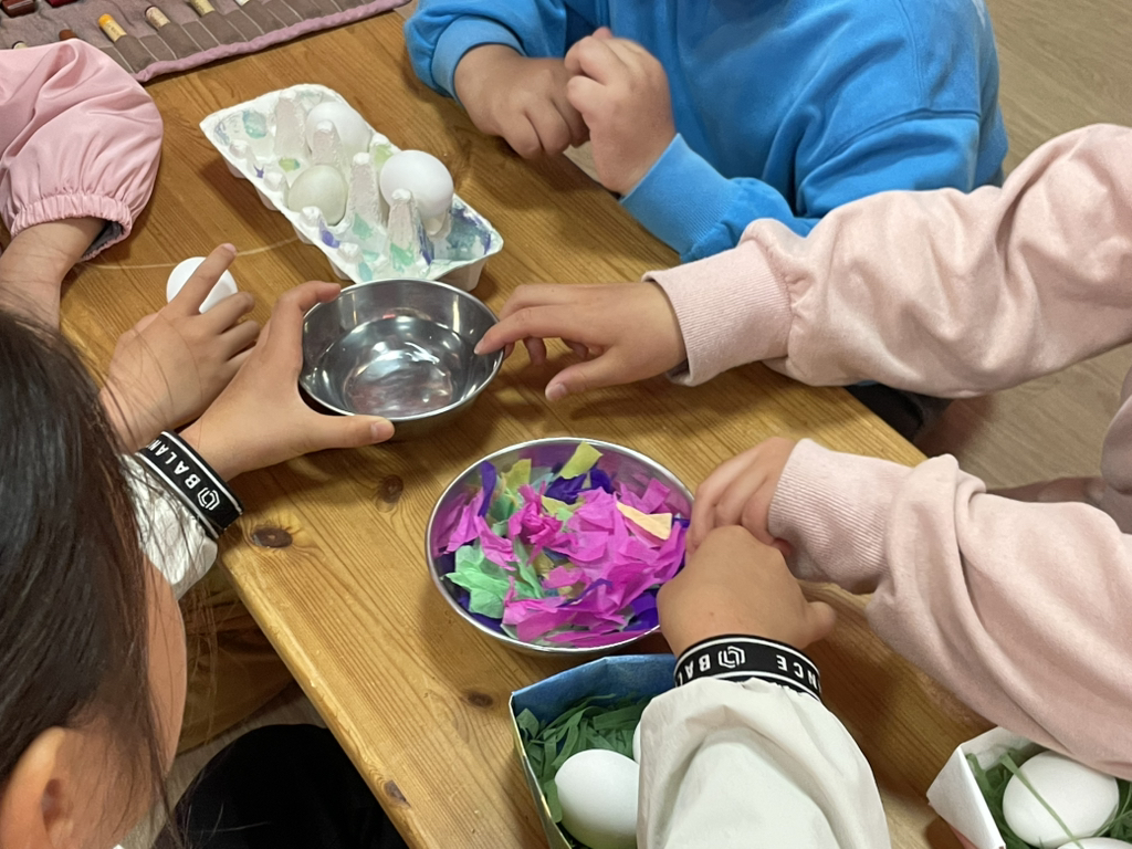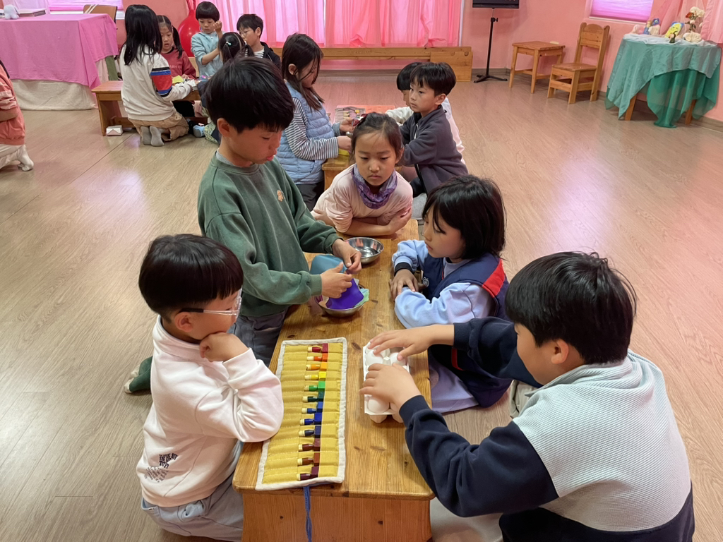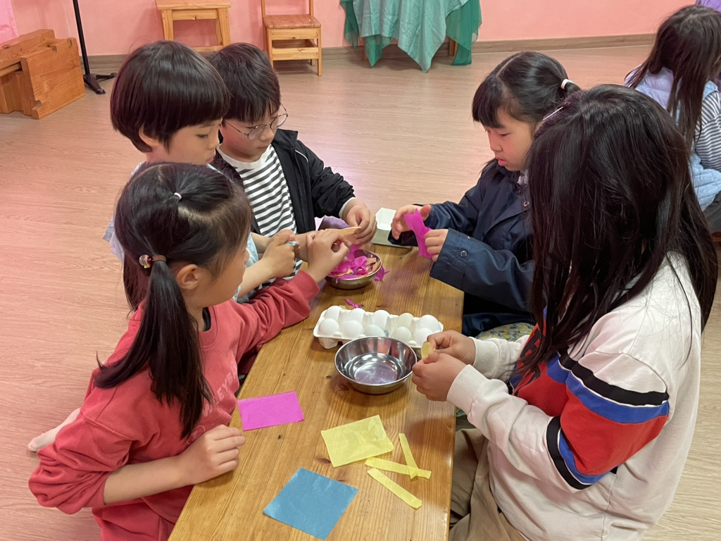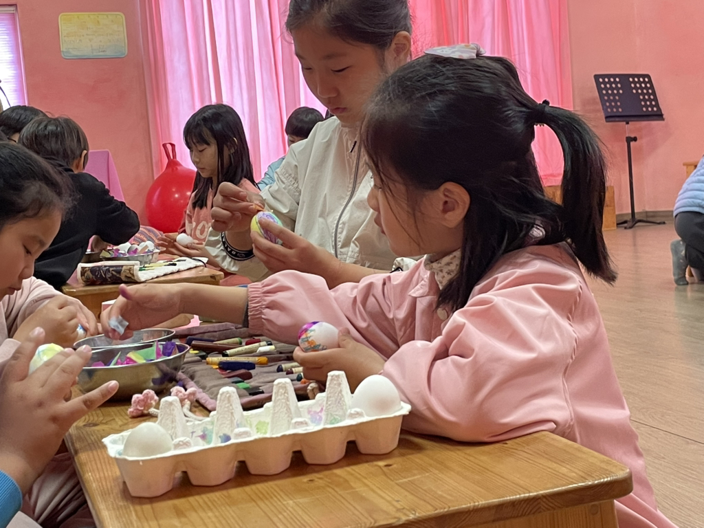 아이들도 토끼처럼 봄의 시작을 알리기 위해 다양한 빛깔의 달걀을 만들어보았네요~