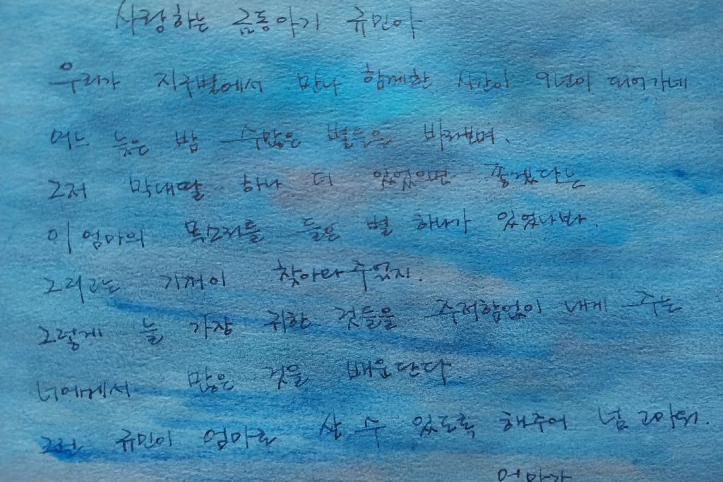 모두의 사랑을 듬뿍 받으며 자라고 있는 규민이가 이 땅에서 소망하는 것들을 잘 이뤄내고 나누게 되길 기도합니다.