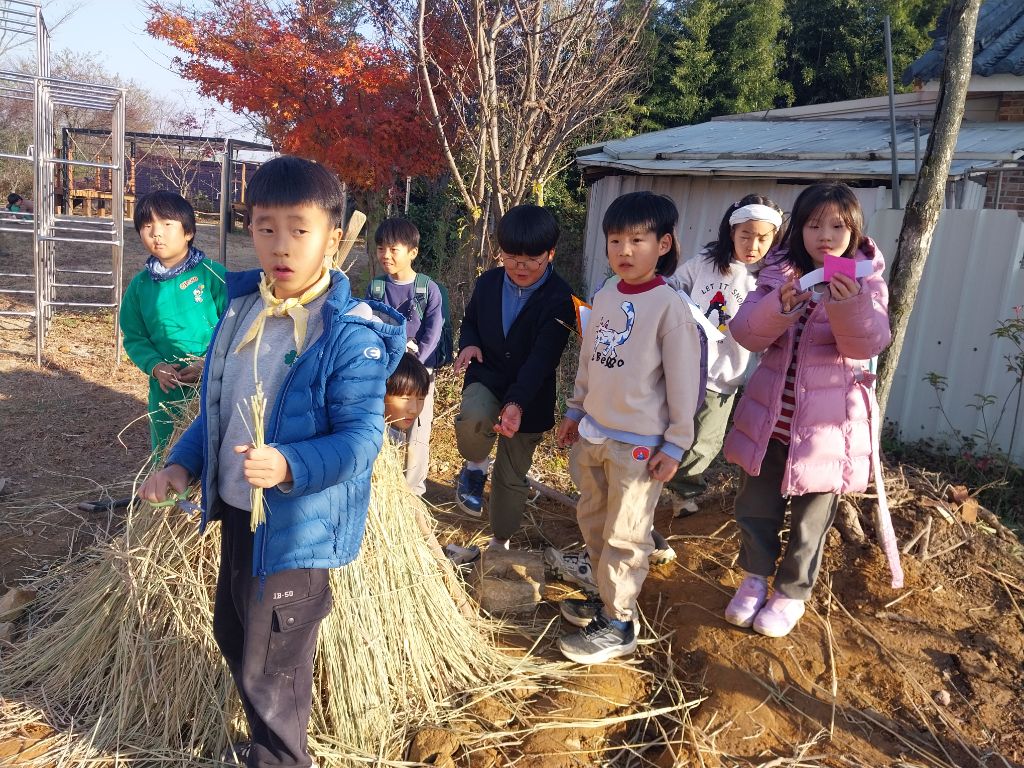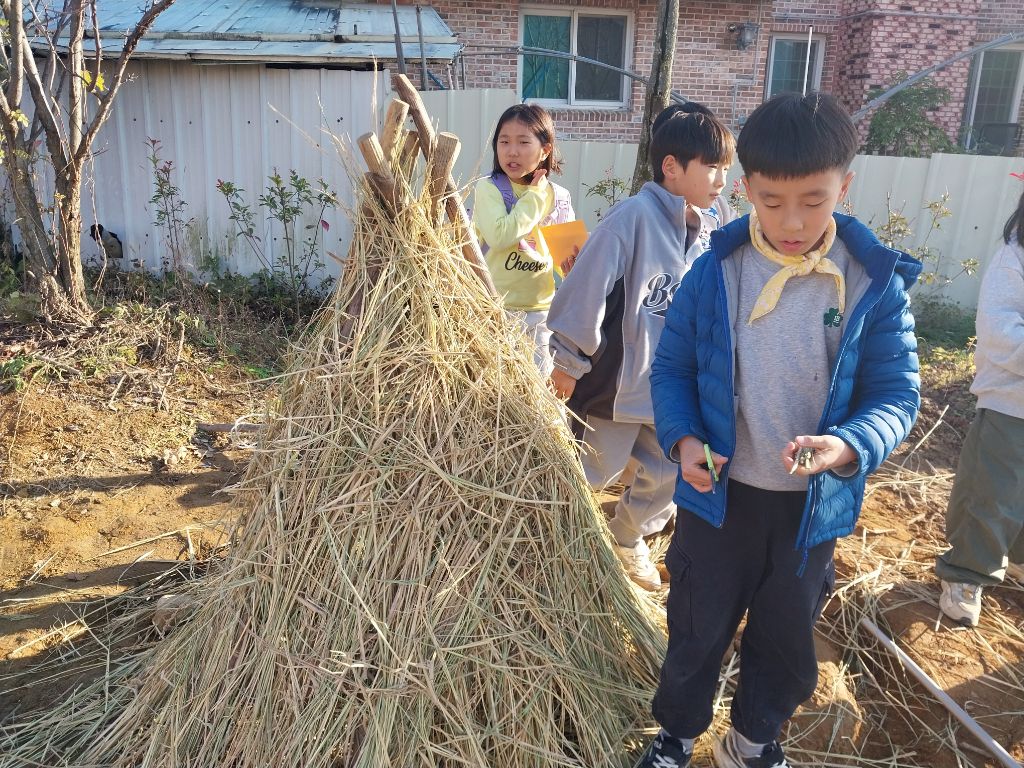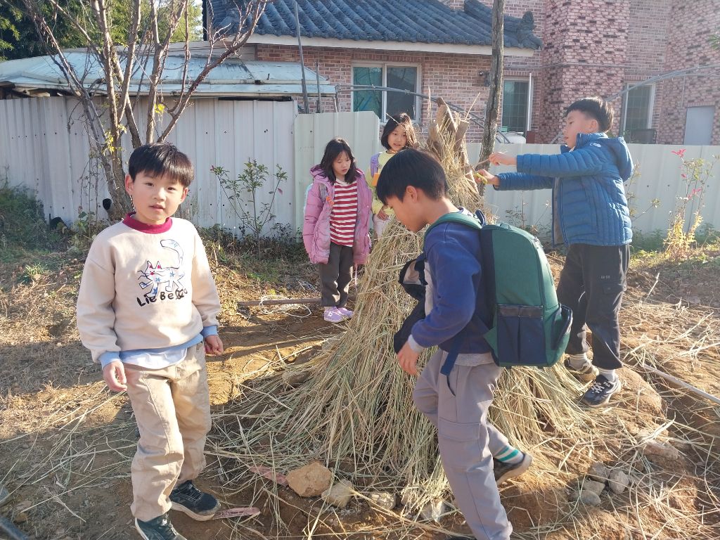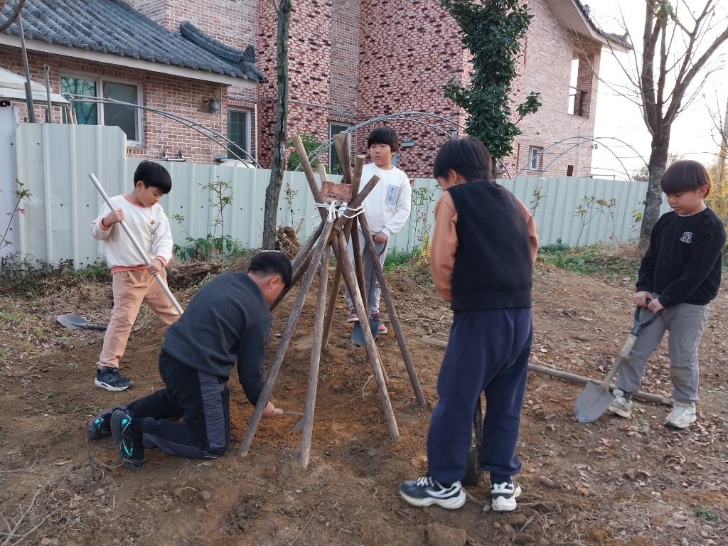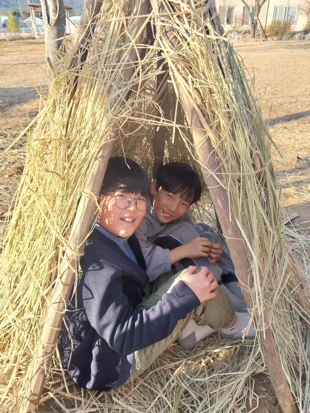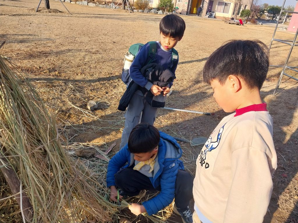 곧 학교를 떠날 진호를 위해 집을 지었어요.