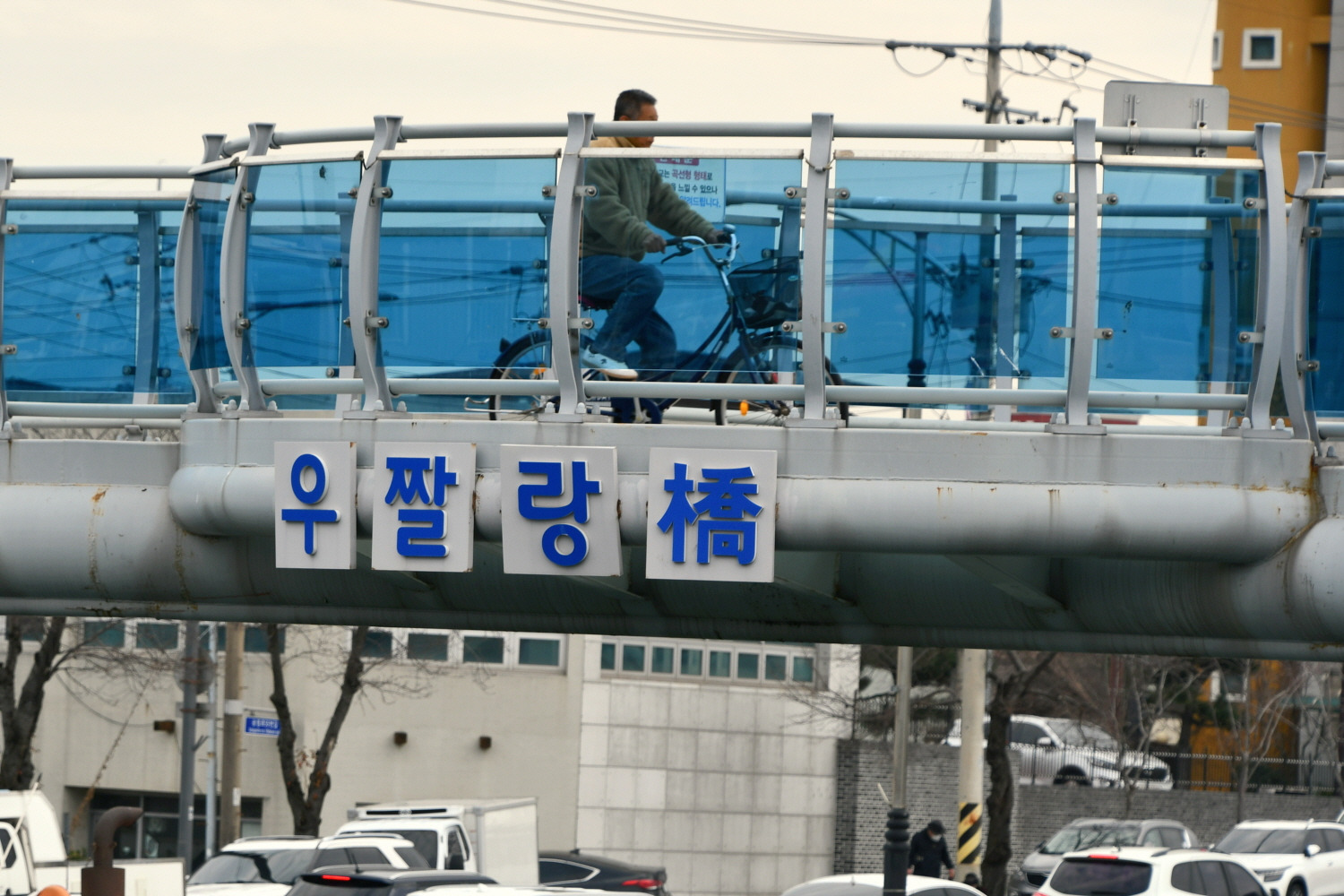 남쪽 형산강에서 시작하여 차례로 나타나는 다리 이름이 갈랑교 말랑교 우짤랑교입니다.