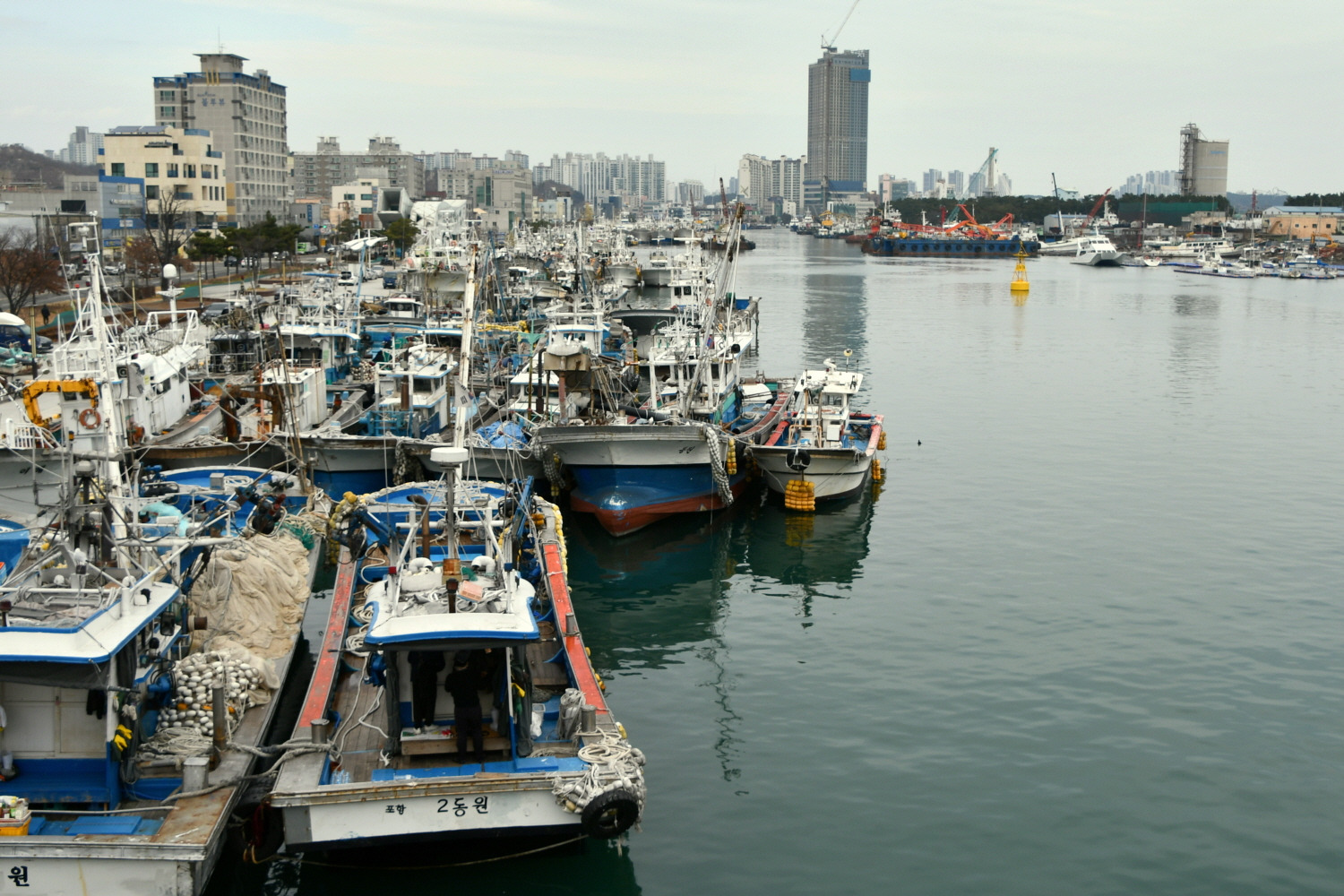 죽도시장 앞 우짤랑교부터 포항항까지는 어선들 가득 출렁이는 여느 항구와 같은 풍경입니다.