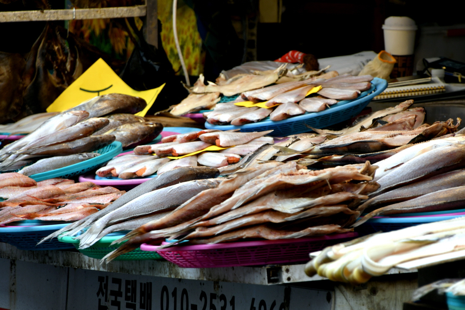 나는 좋아하는 해물을 구경하며 어시장을 배회하다가 과메기를 놓고 잔술을 마십니다.